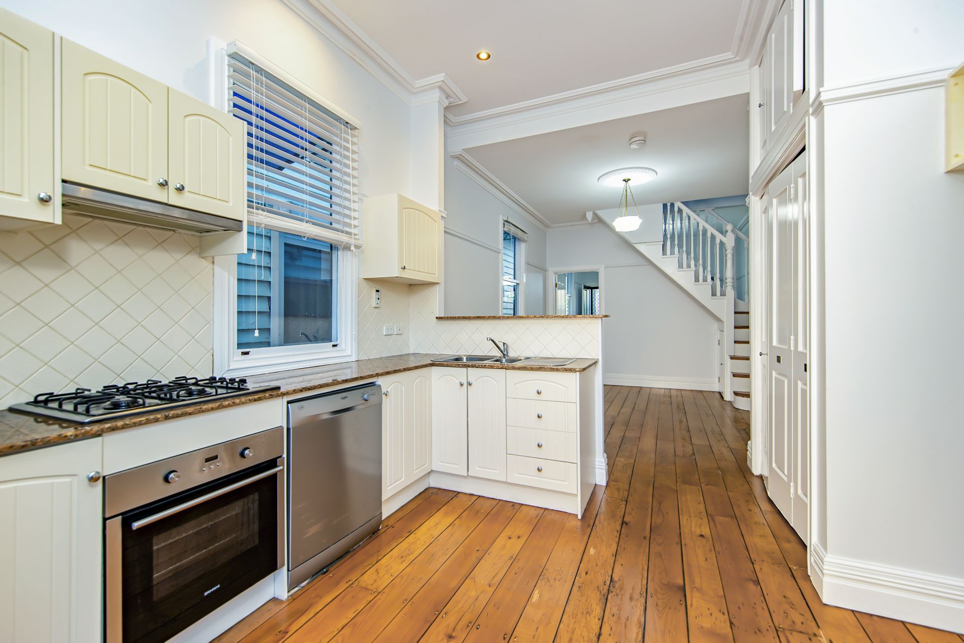 - Modern kitchen and appliances including dishwasher and gas cooking.