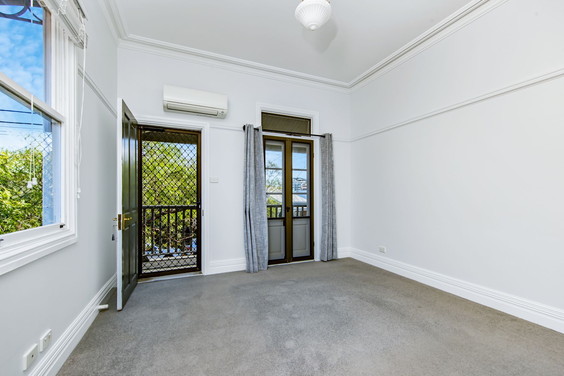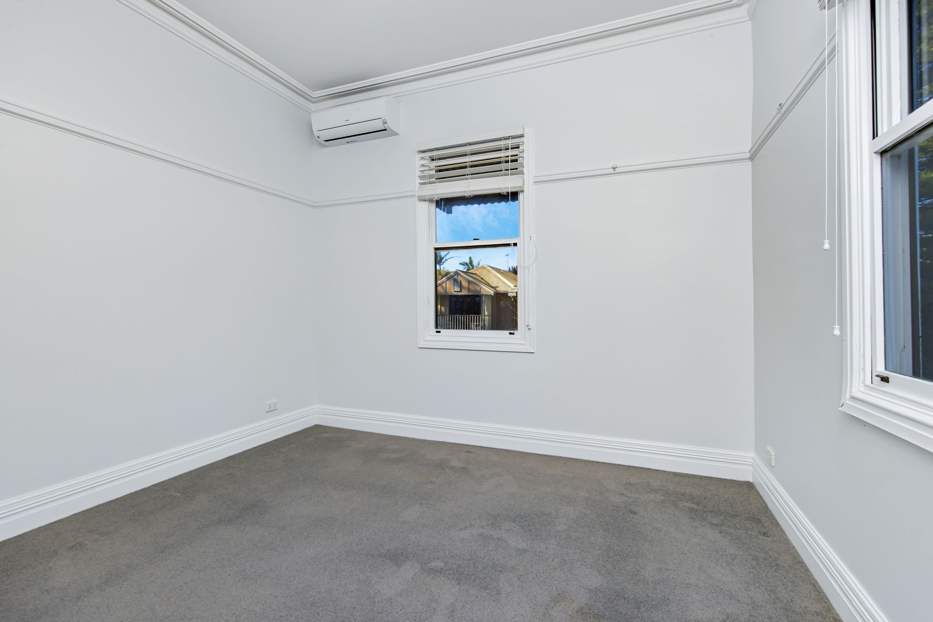 - 2 spacious bedrooms upstairs, each with air conditioning and wooden wardrobes