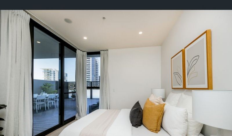 Positioned on the third floor it enjoys an open plan layout encompassing a Caesarstone kitchen, two bedrooms and two bathrooms plus an enormous outdoor terrace for alfresco dining.