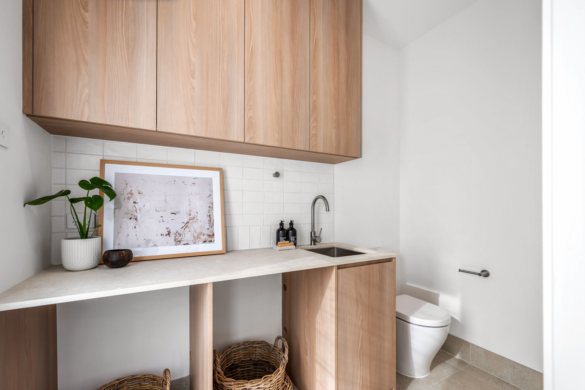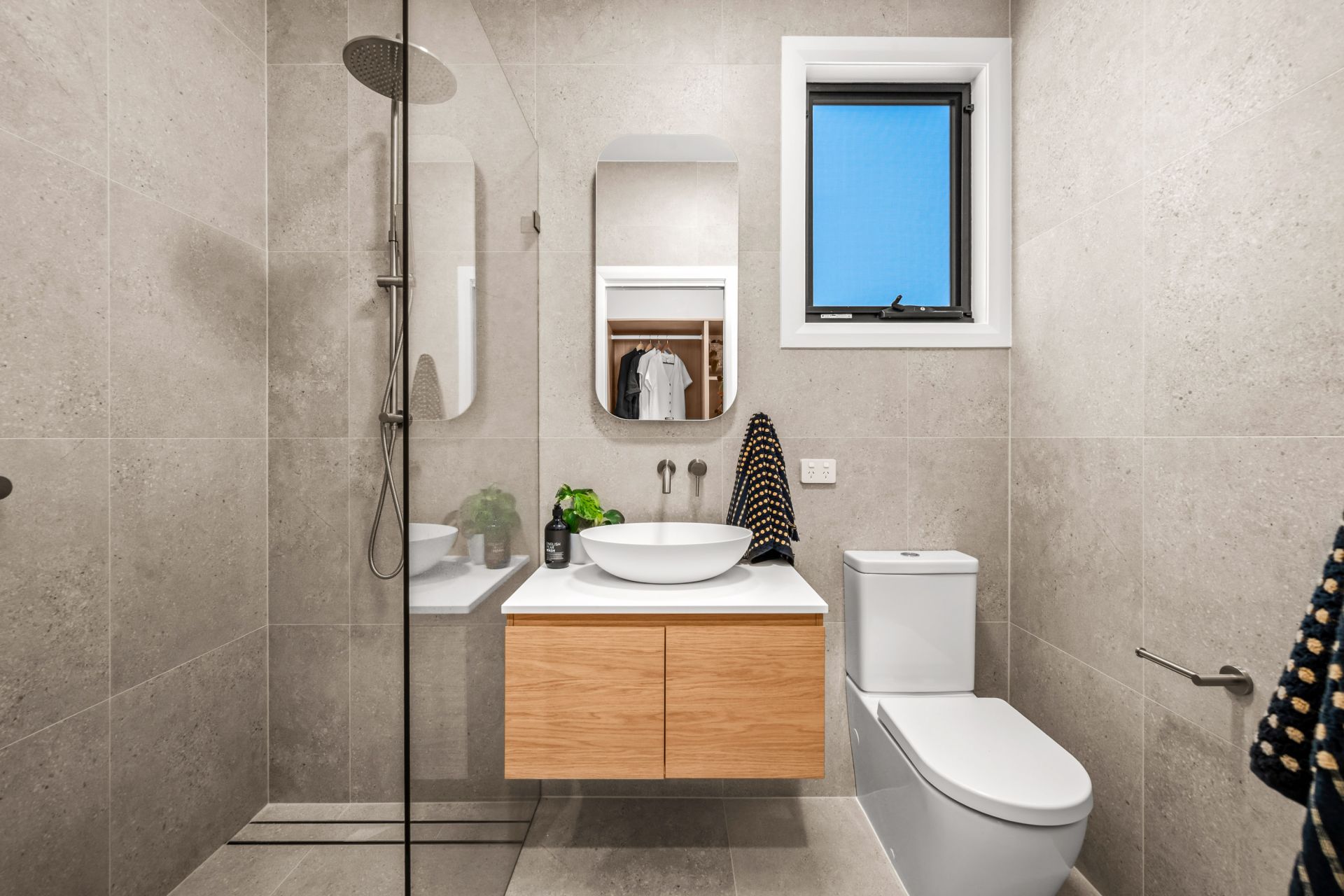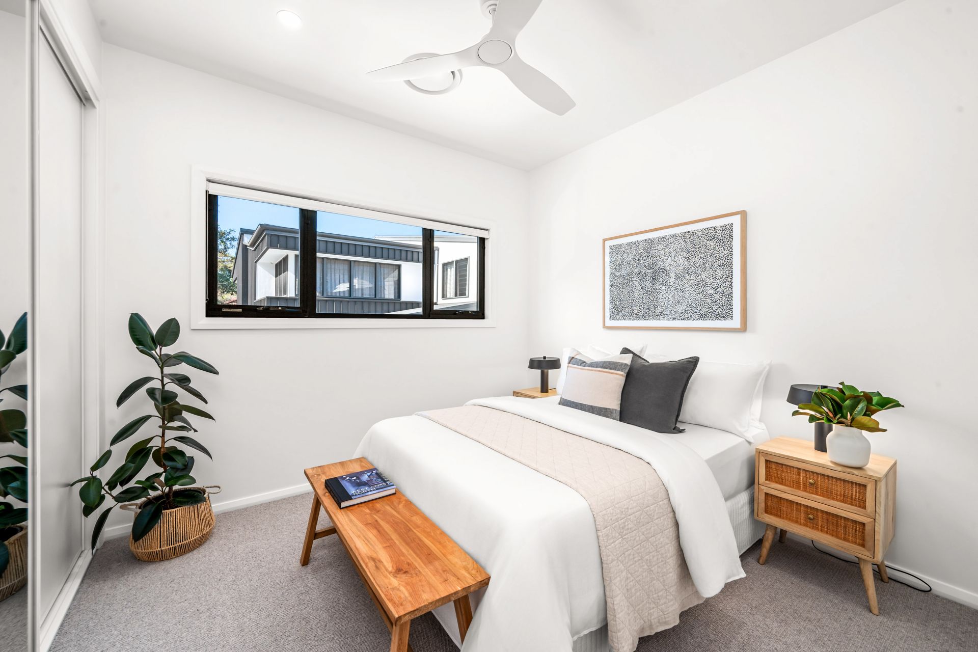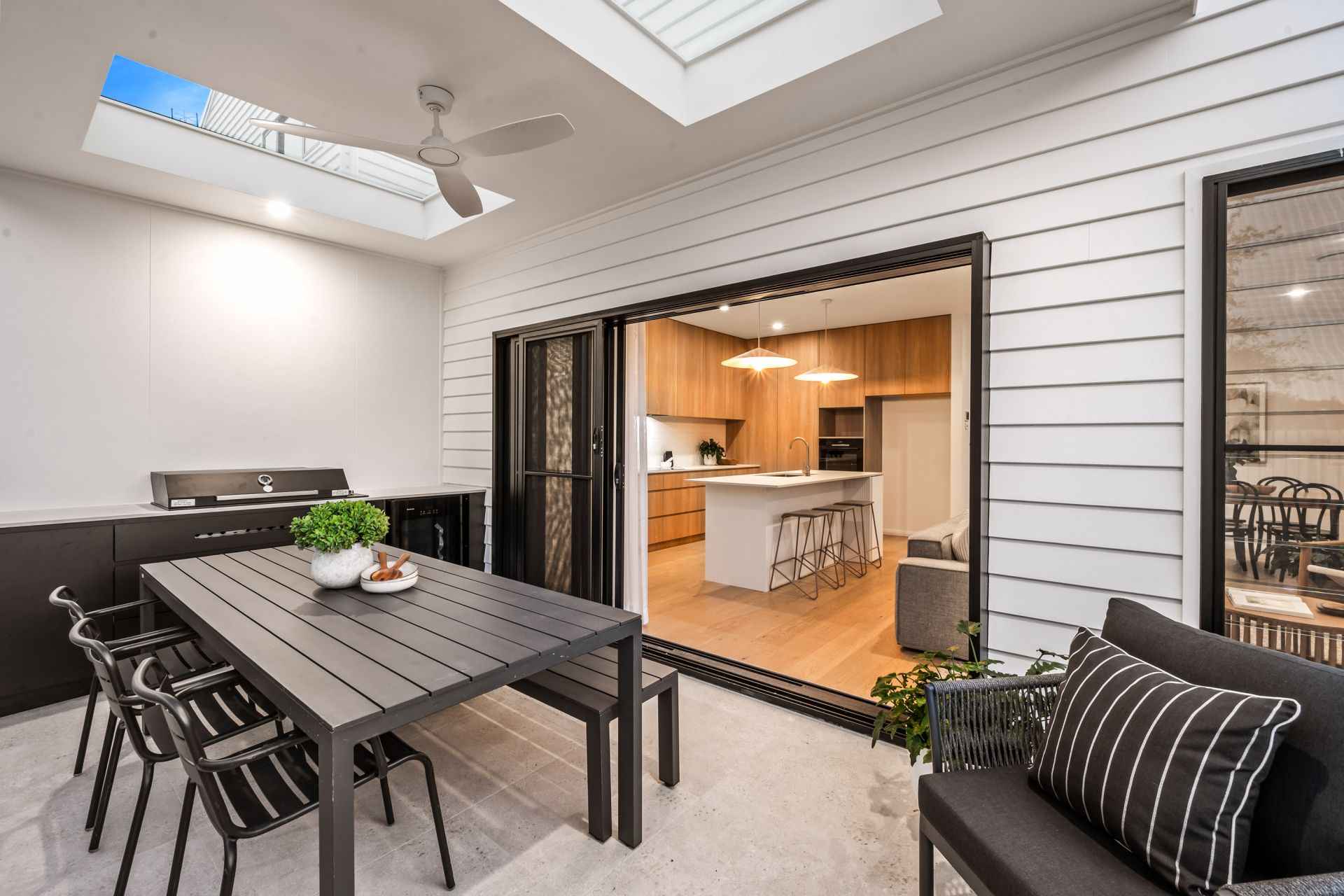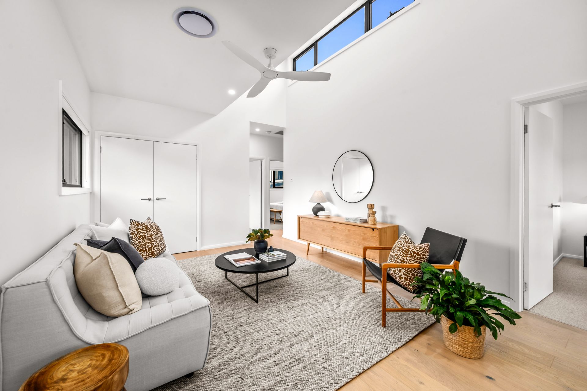 Step inside and you'll find a home that feels light, open, and generous. Downstairs, 2.7m ceilings frame the airy open-plan living space, anchored by a showpiece island kitchen. Upstairs, a second living area soars under 4.4m raked ceilings with clerestory windows streaming in natural light. There are three bedrooms, 2.5 high-end bathrooms, a home office nook, and a surprising amount of storage. Outdoors, each home enjoys a prized private north-east facing yard with a low-maintenance design, light-filled alfresco, and a fully equipped barbecue kitchen for relaxed entertaining.
