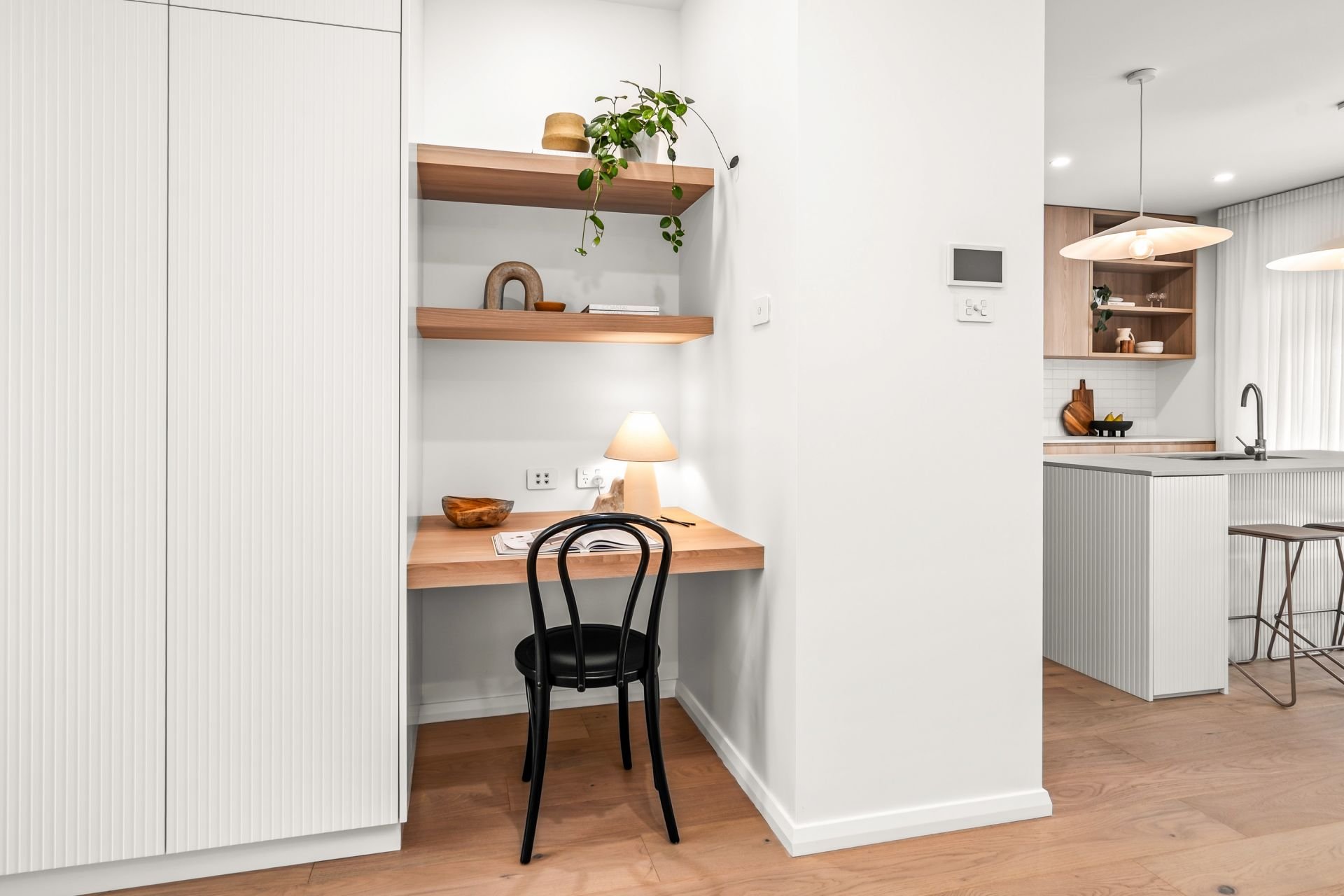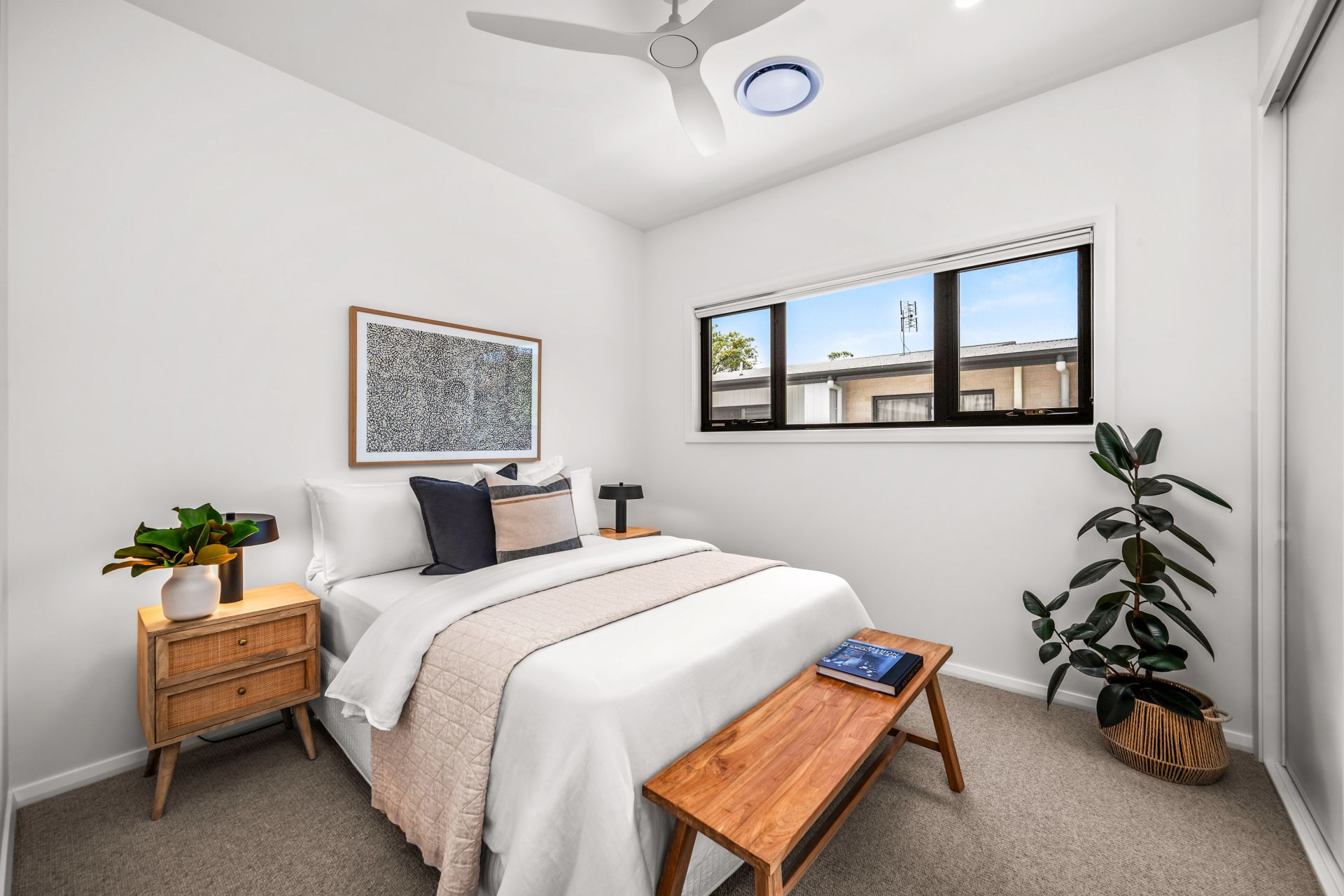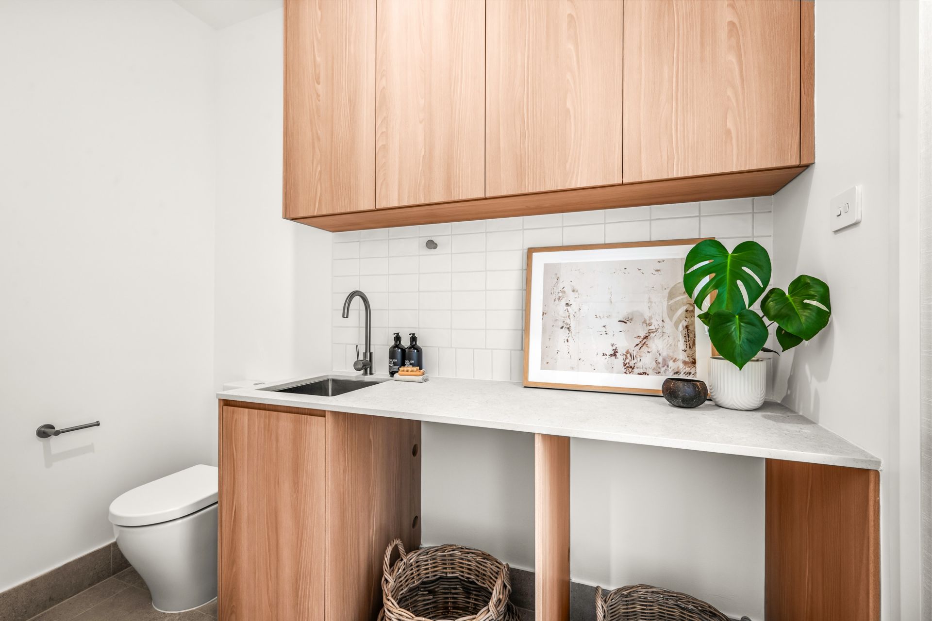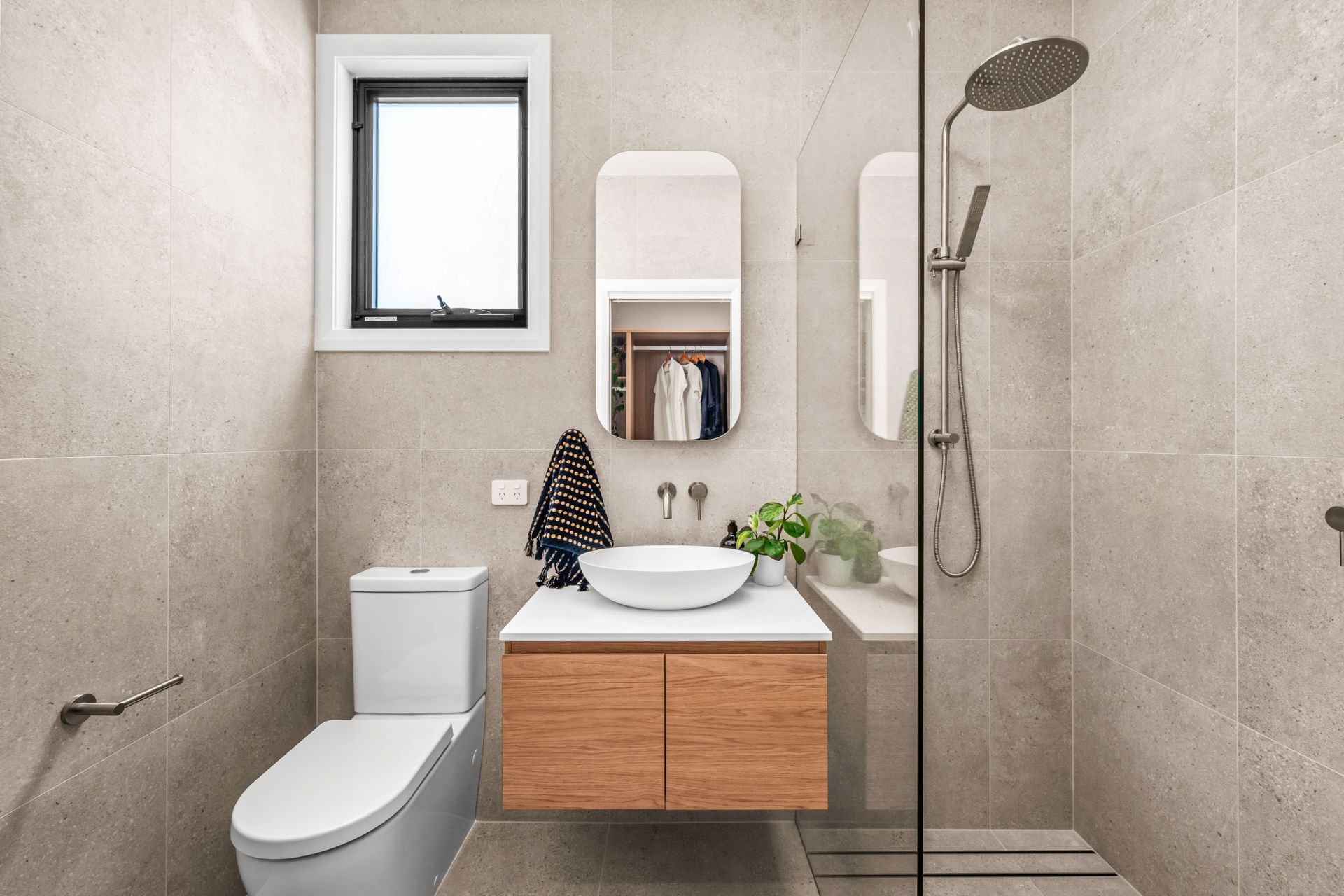 Step inside and you'll find a home that feels light, open, and generous. Downstairs, 2.7m ceilings frame the airy open-plan living space, anchored by a showpiece island kitchen. Upstairs, a second living area soars under 4.4m raked ceilings with clerestory windows streaming in natural light. There are three bedrooms, 2.5 high-end bathrooms, a home office nook, and a surprising amount of storage. Outdoors, each home enjoys a prized private north-east facing yard with a low-maintenance design, light-filled alfresco, and a fully equipped barbecue kitchen for relaxed entertaining.