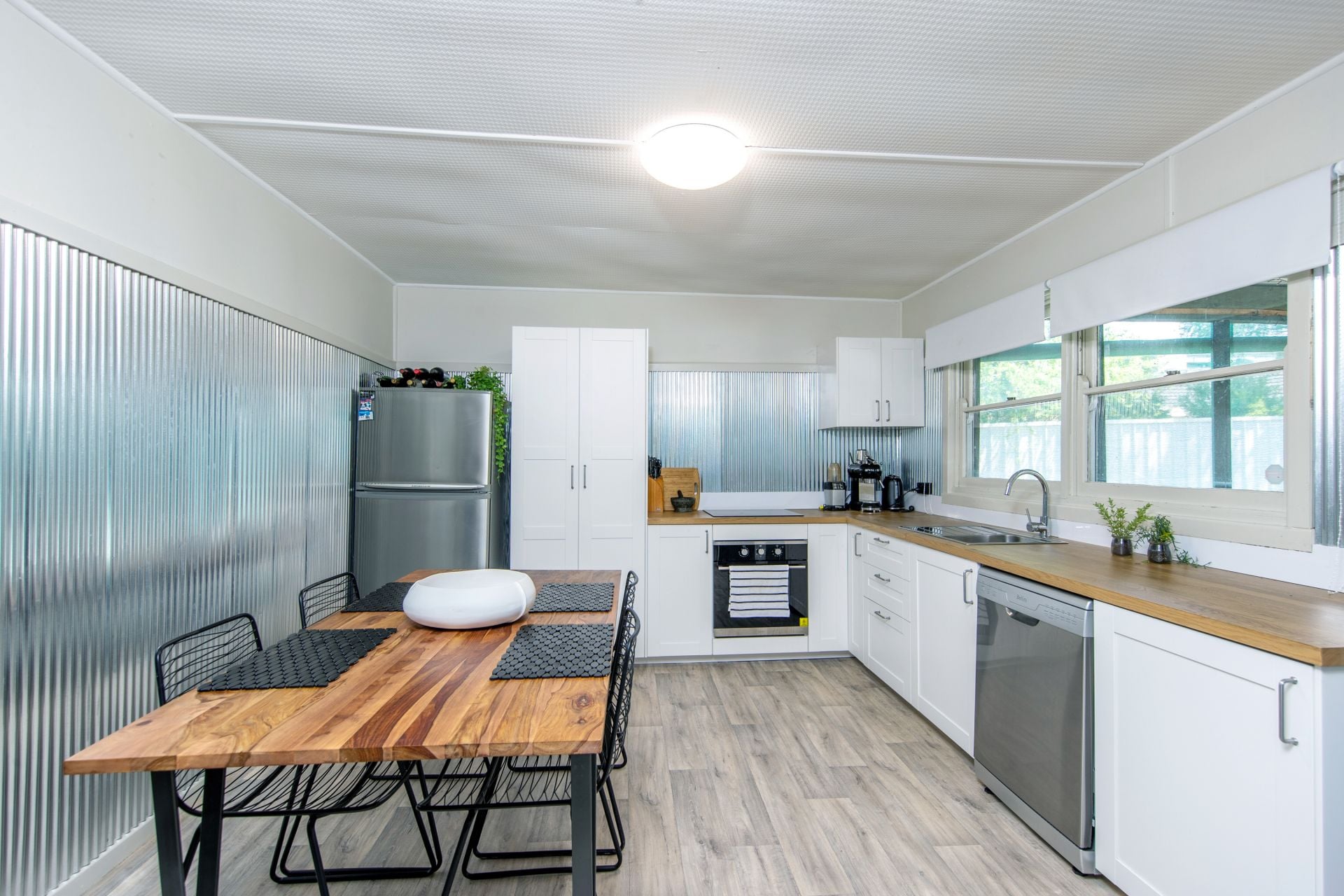 - Modern country style eat in kitchen with aluminium feature walls and access to covered outdoor area
