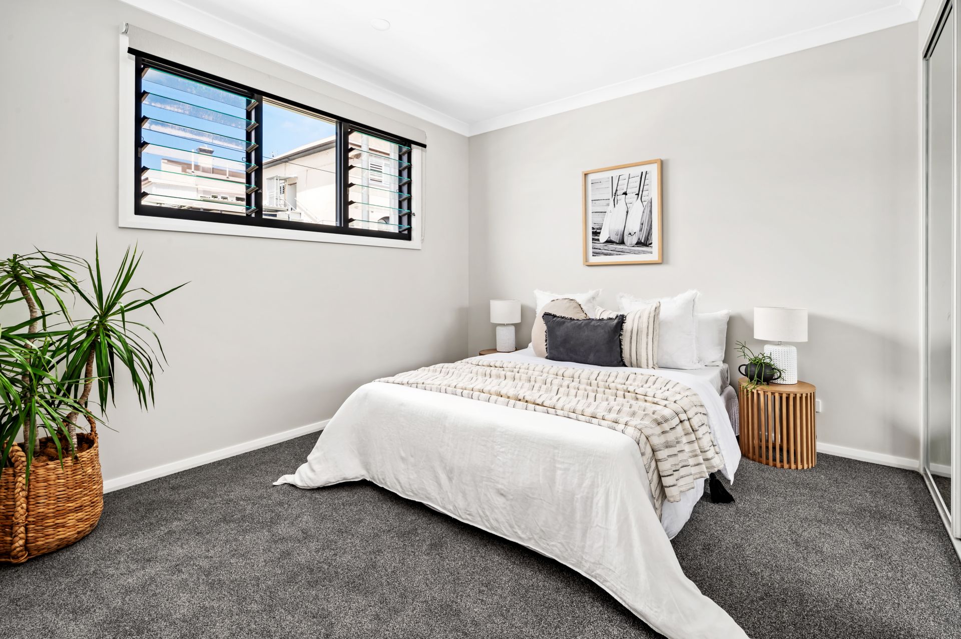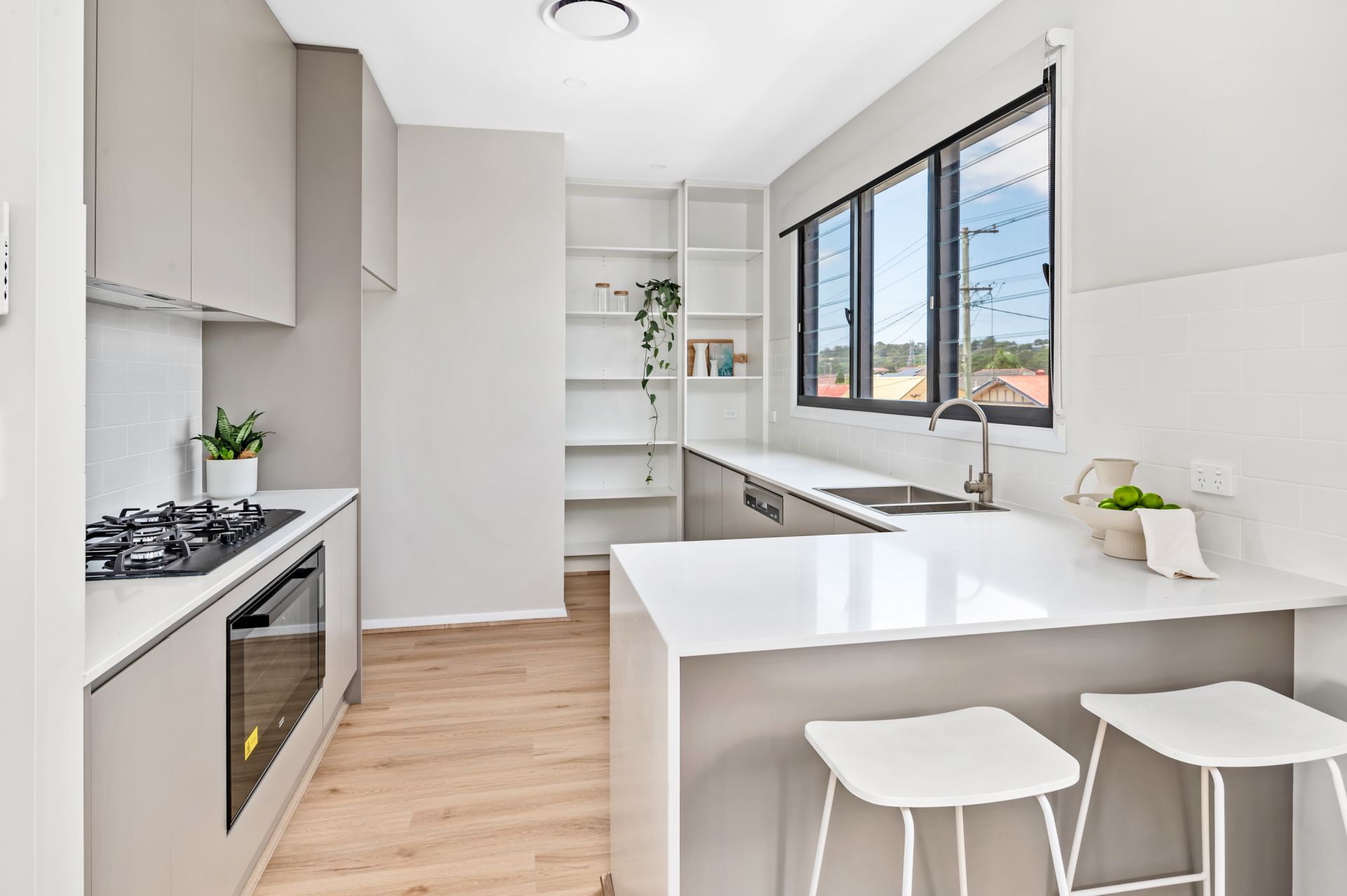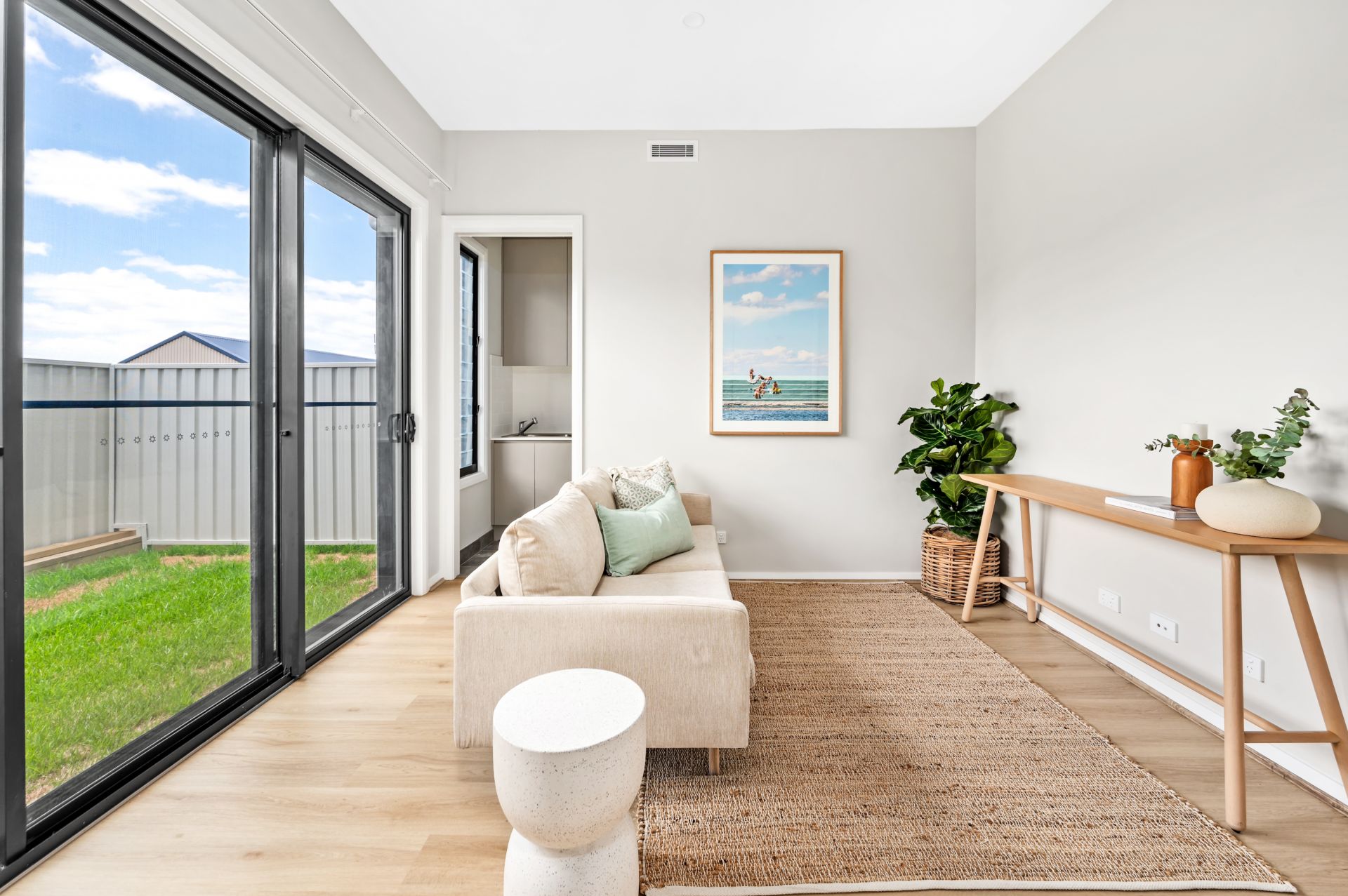 The ground floor is all about your kids or guests and their comfort. Three bedrooms with plenty of closet space, a full-size bathroom for relaxation, and a second living space that opens to a low-maintenance courtyard garden. The living and dining area upstairs is a spacious, open area with a soaring 4.5m raked ceiling and louvre windows bringing beautiful crossflow. And if you love soaking up the northerly sun, the covered alfresco area is your spot. The kitchen is equipped with quality Franke appliances and all the cupboard space you could wish for. The main bedroom comes with a sky-lit walk-in robe and chic ensuite with that same impressive, raked ceiling. It's a space where you can truly unwind. Hybrid flooring, plush carpet, ducted a/c, and sleek Caesarstone benchtops - this is a home where every detail has been carefully thought out.