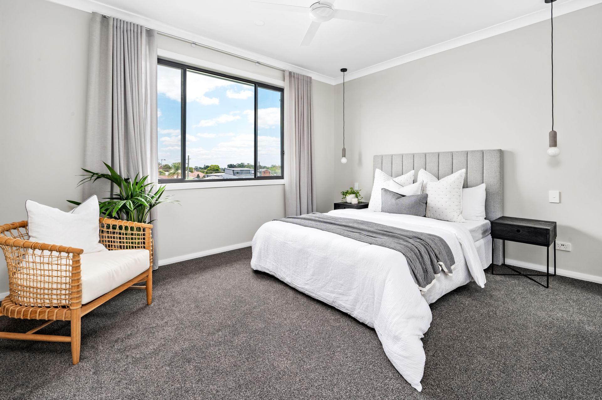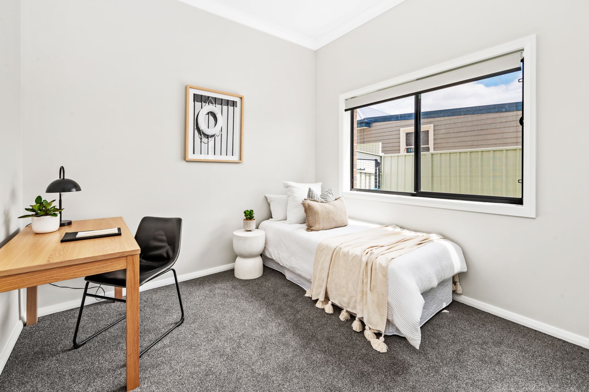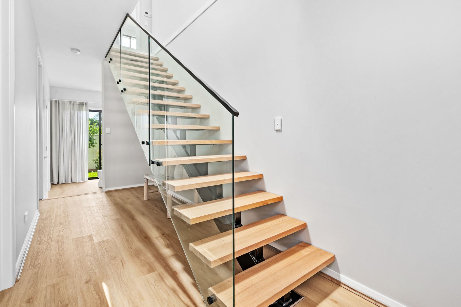 The ground floor is all about your kids or guests and their comfort. Three bedrooms with plenty of closet space, a full-size bathroom for relaxation, and a second living space that opens to a low-maintenance courtyard garden. The living and dining area upstairs is a spacious, open area with a soaring 4.5m raked ceiling and louvre windows bringing beautiful crossflow. And if you love soaking up the northerly sun, the covered alfresco area is your spot. The kitchen is equipped with quality Franke appliances and all the cupboard space you could wish for. The main bedroom comes with a sky-lit walk-in robe and chic ensuite with that same impressive, raked ceiling. It's a space where you can truly unwind. Hybrid flooring, plush carpet, ducted a/c, and sleek Caesarstone benchtops - this is a home where every detail has been carefully thought out.