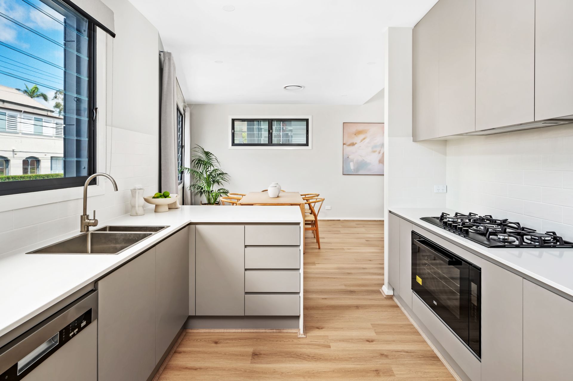 - 900m gas cooktop and oven, semi-integrated dishwasher