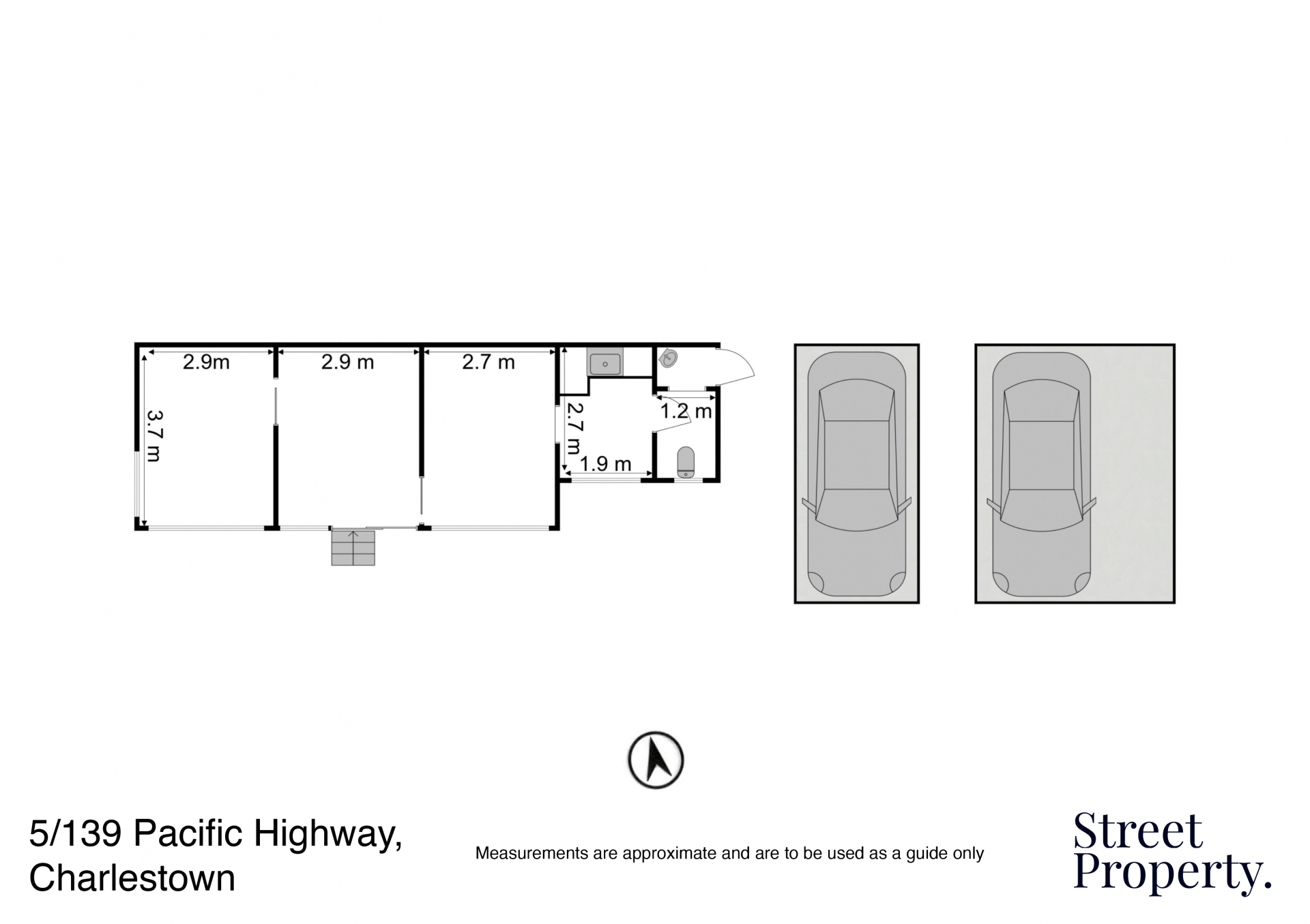 Fifty square metres (approx) internally plus 2 designated car spaces.