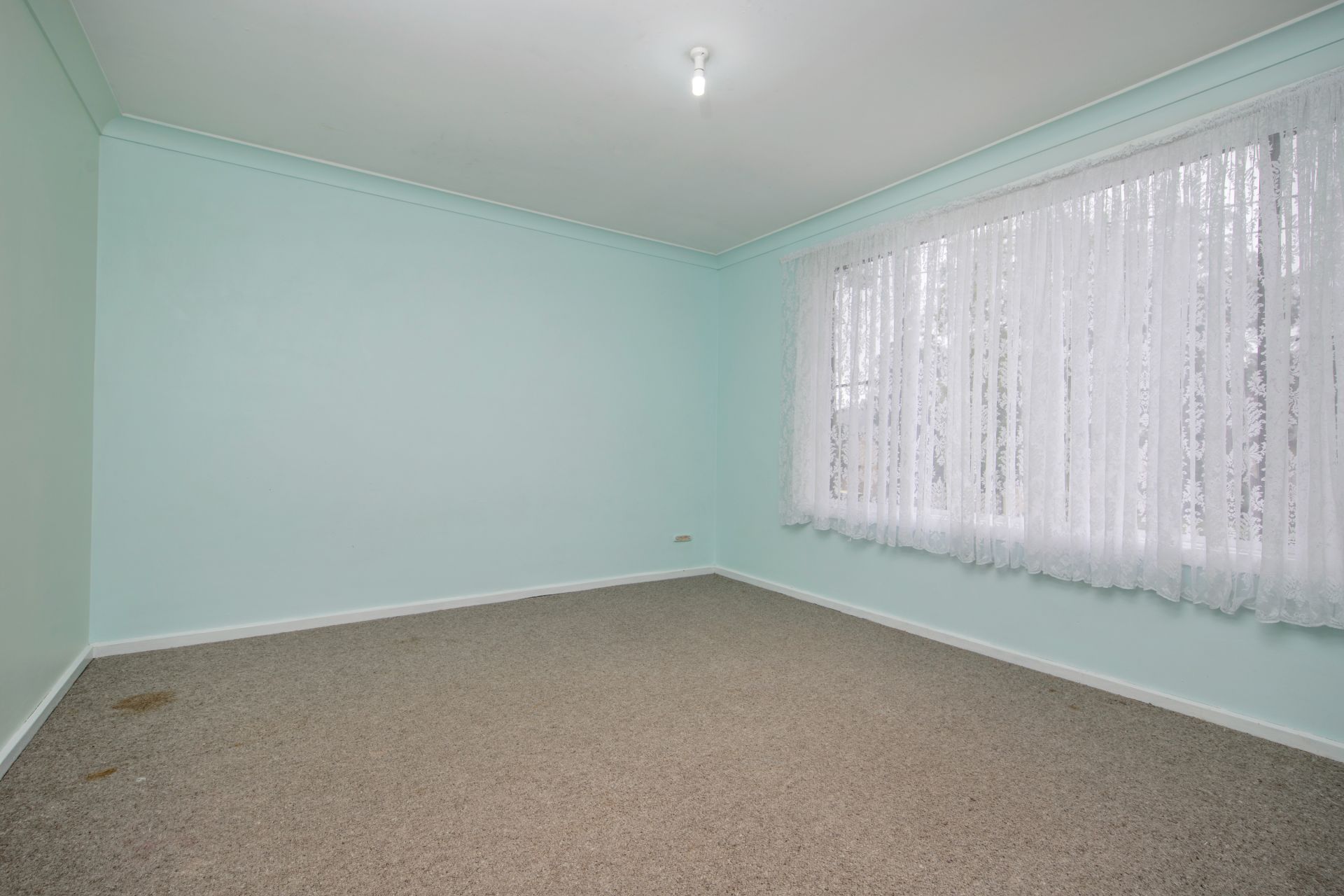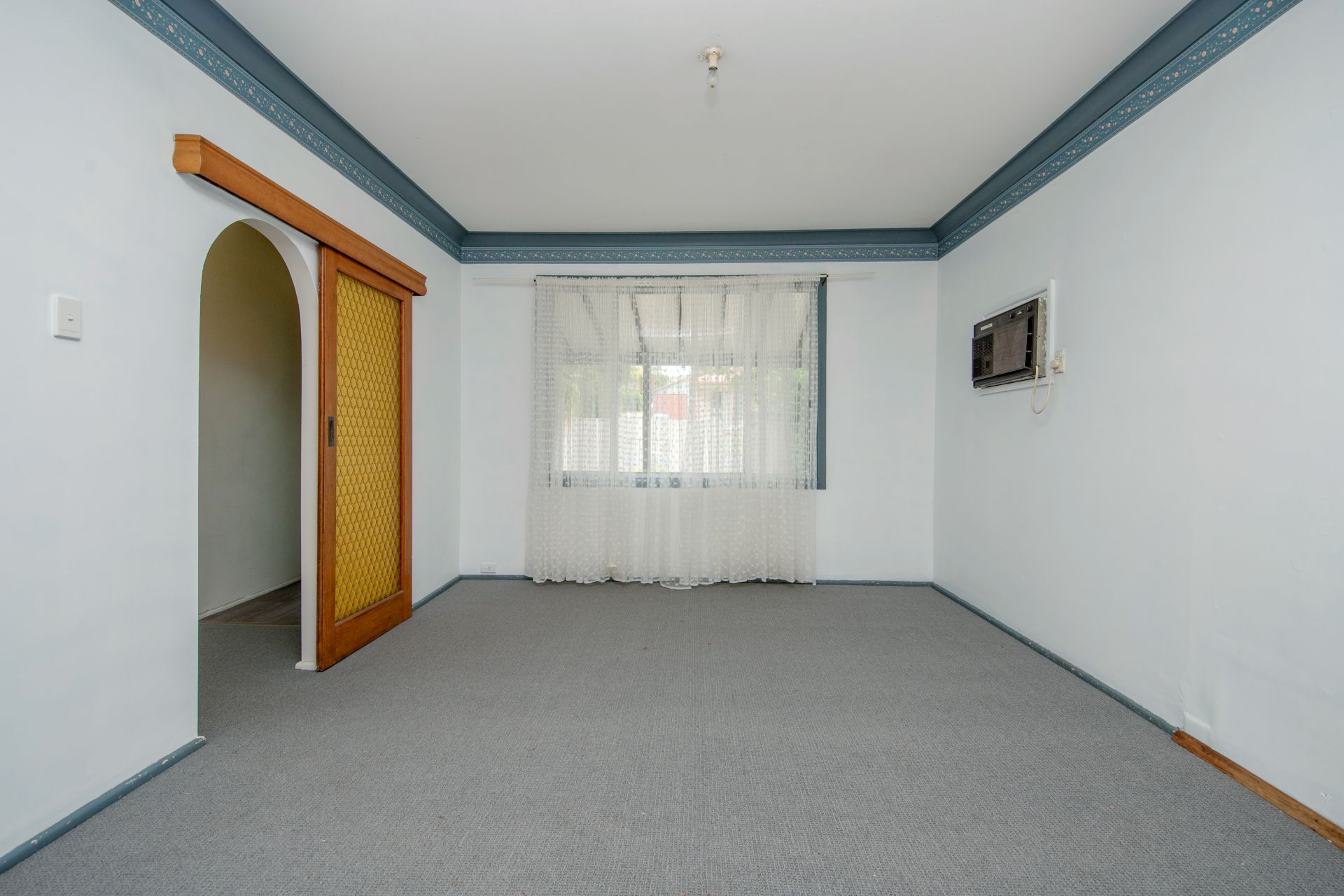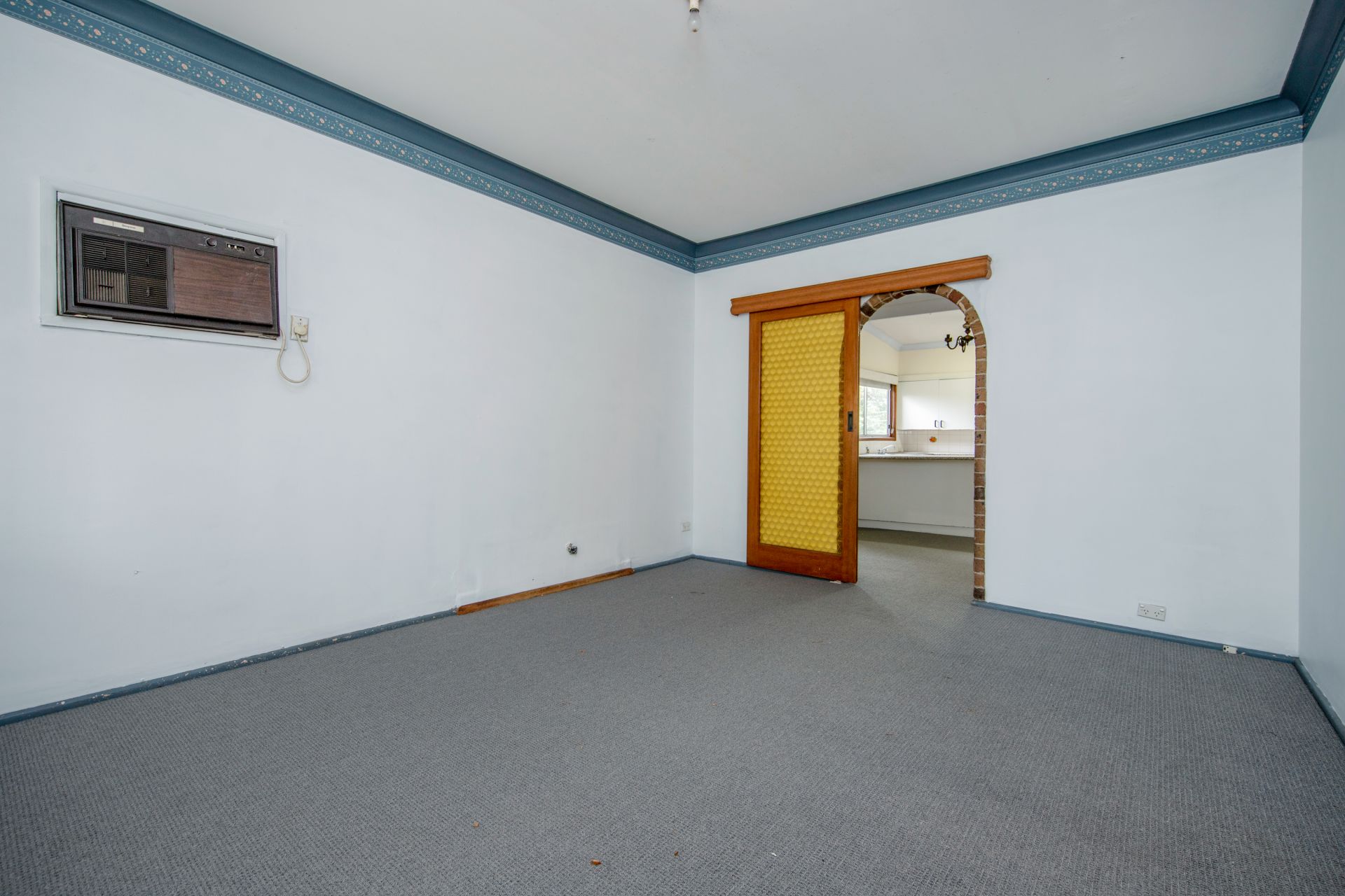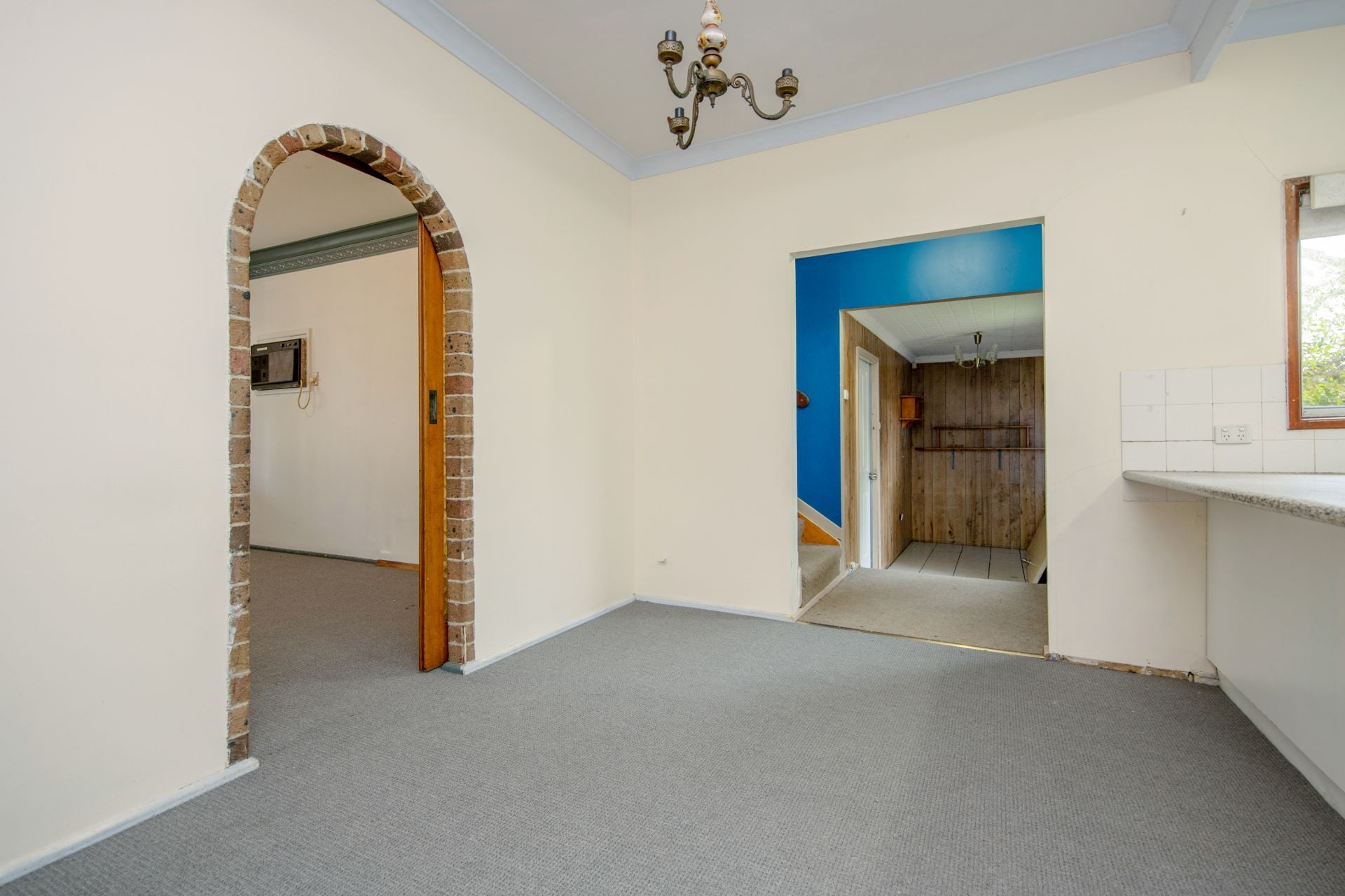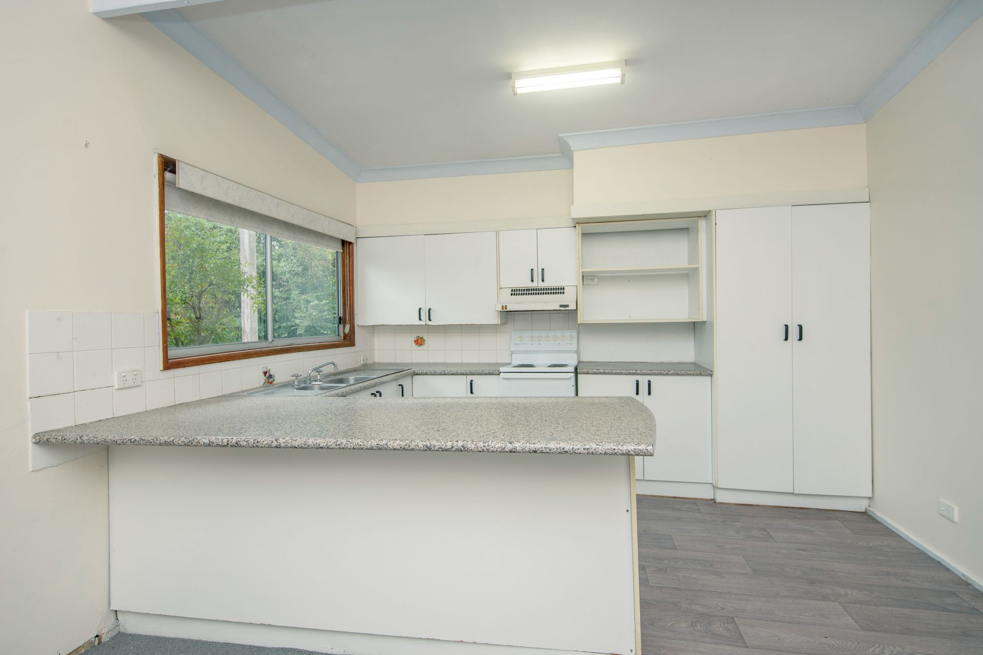 The large lounge room has been freshly carpeted and the functional kitchen,