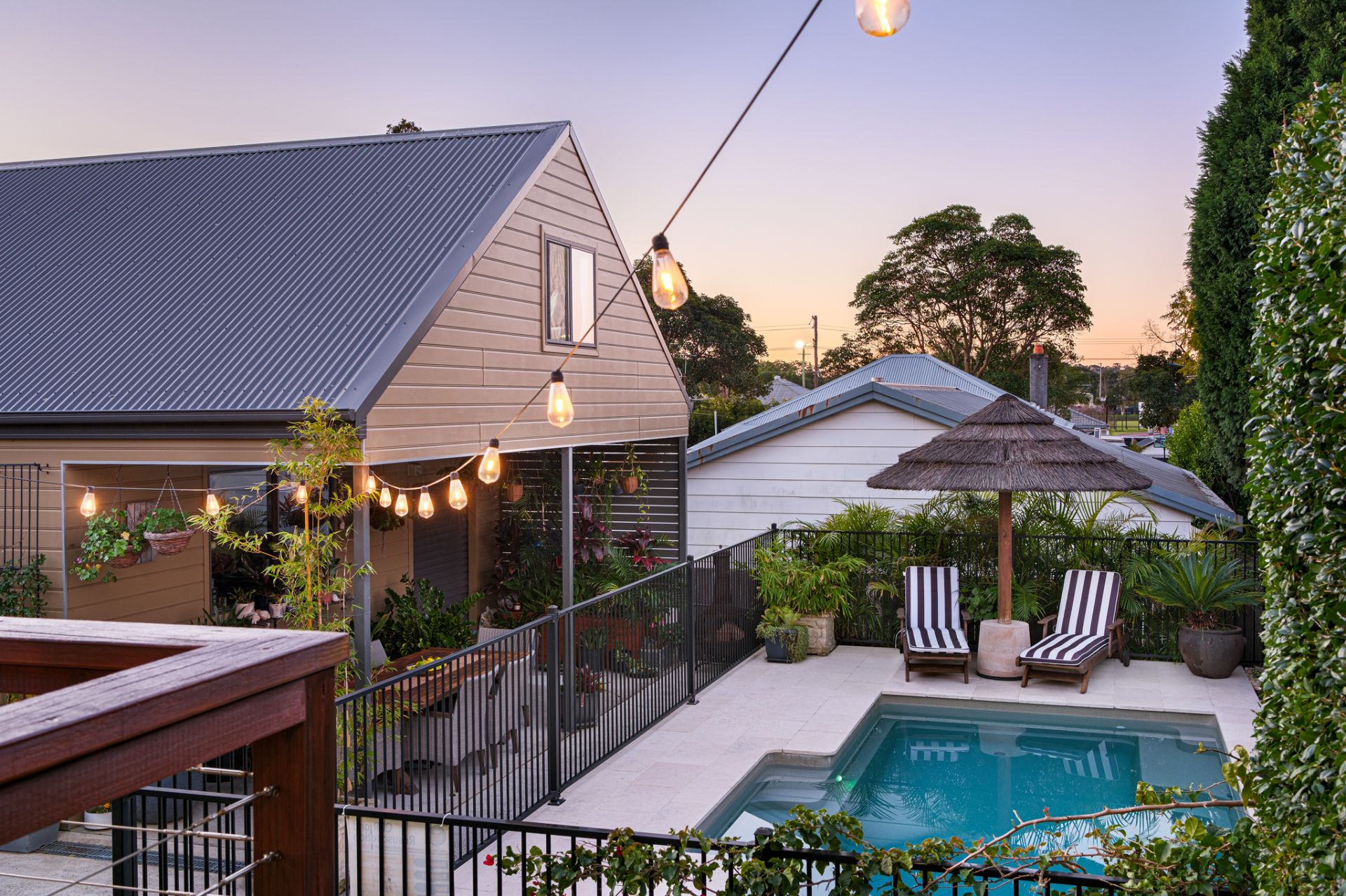 Period family home with north facing deck and pool plus versatile retreat