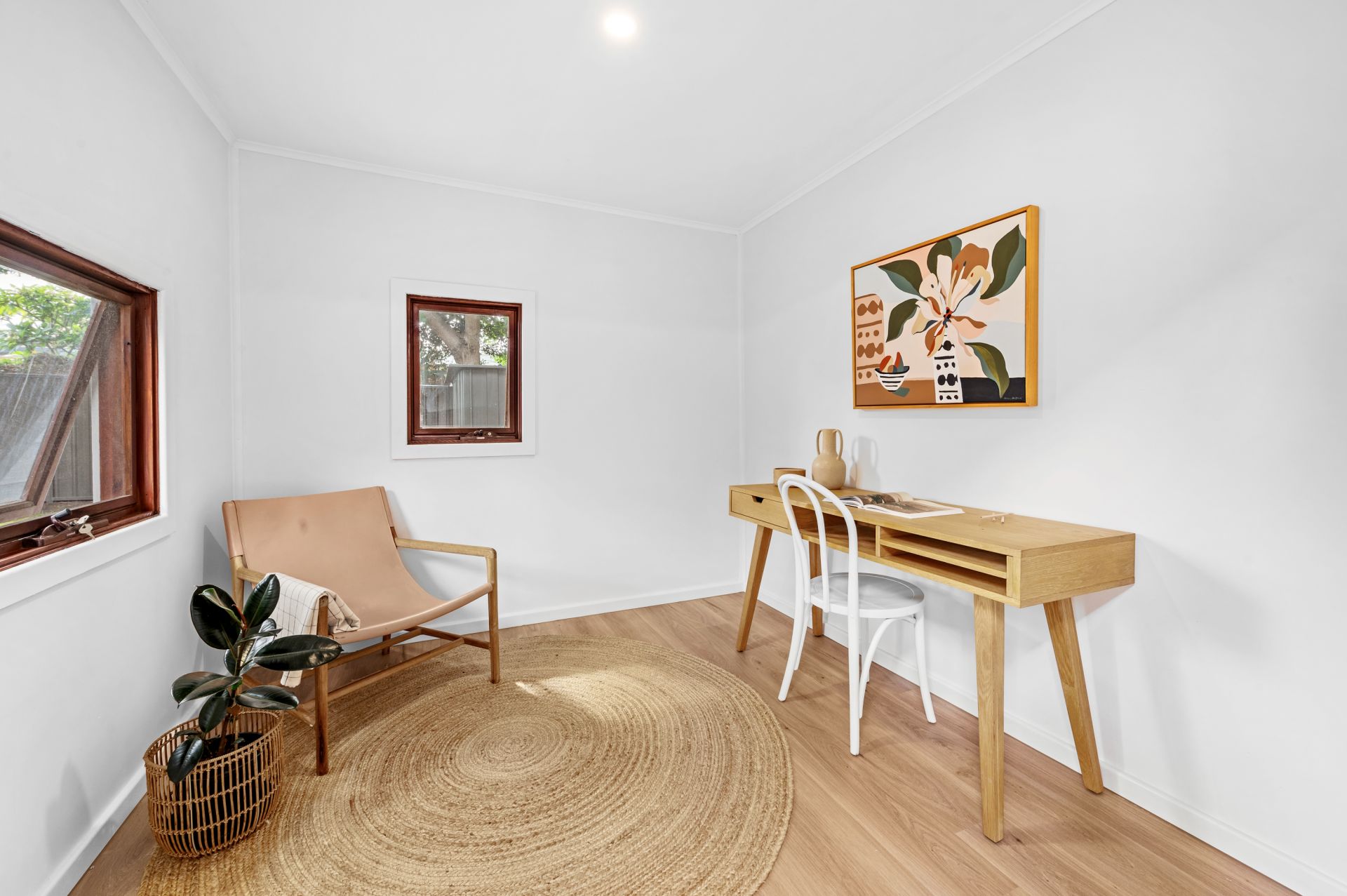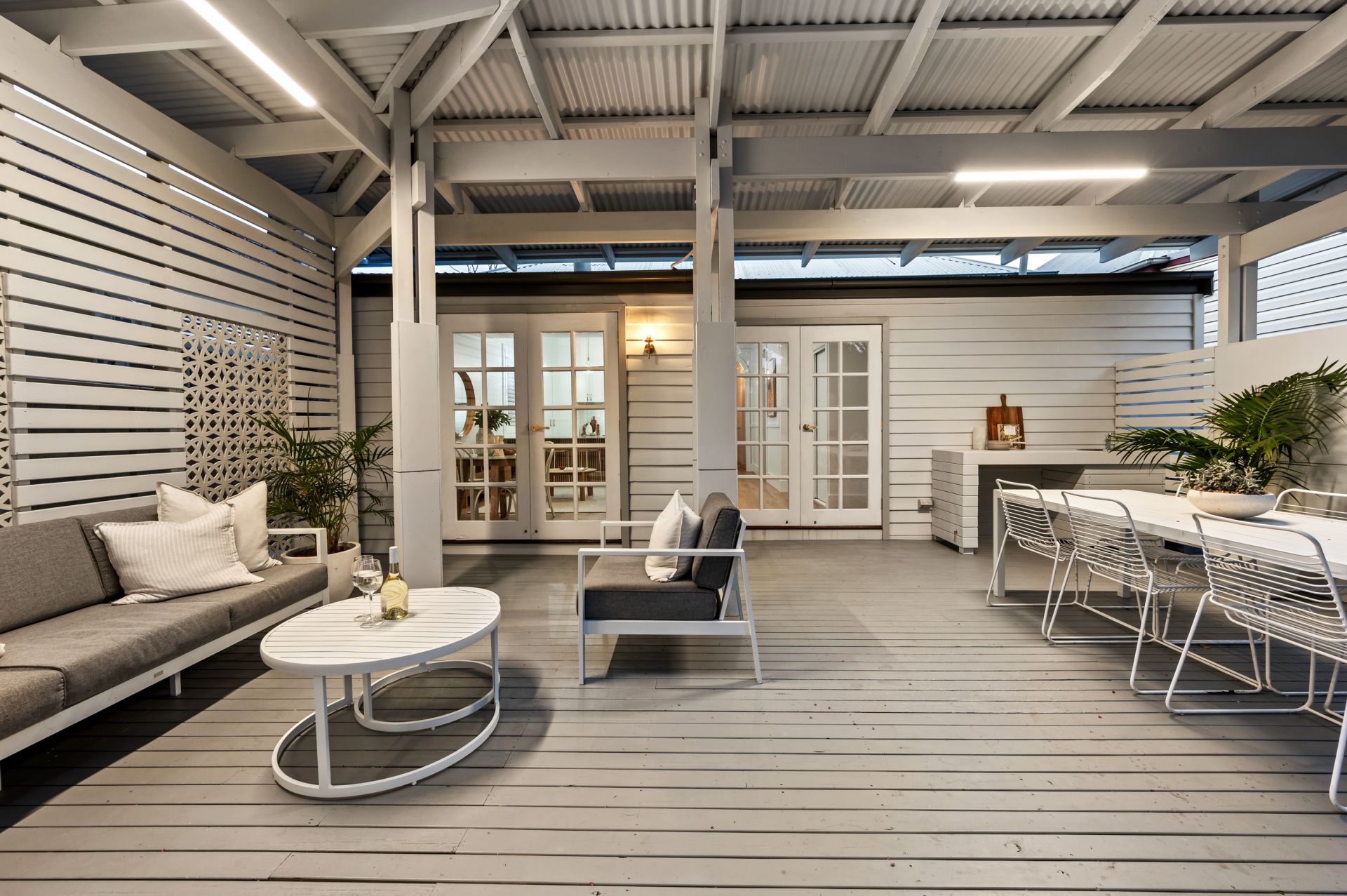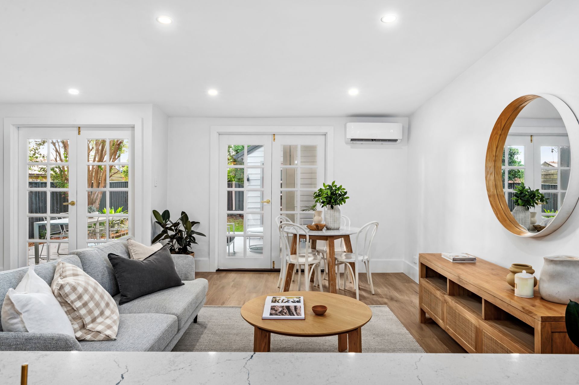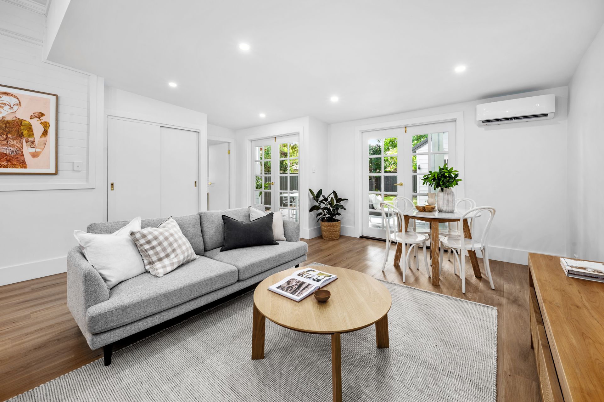 - Air-conditioned open plan living with hybrid floors and French doors connecting to deck