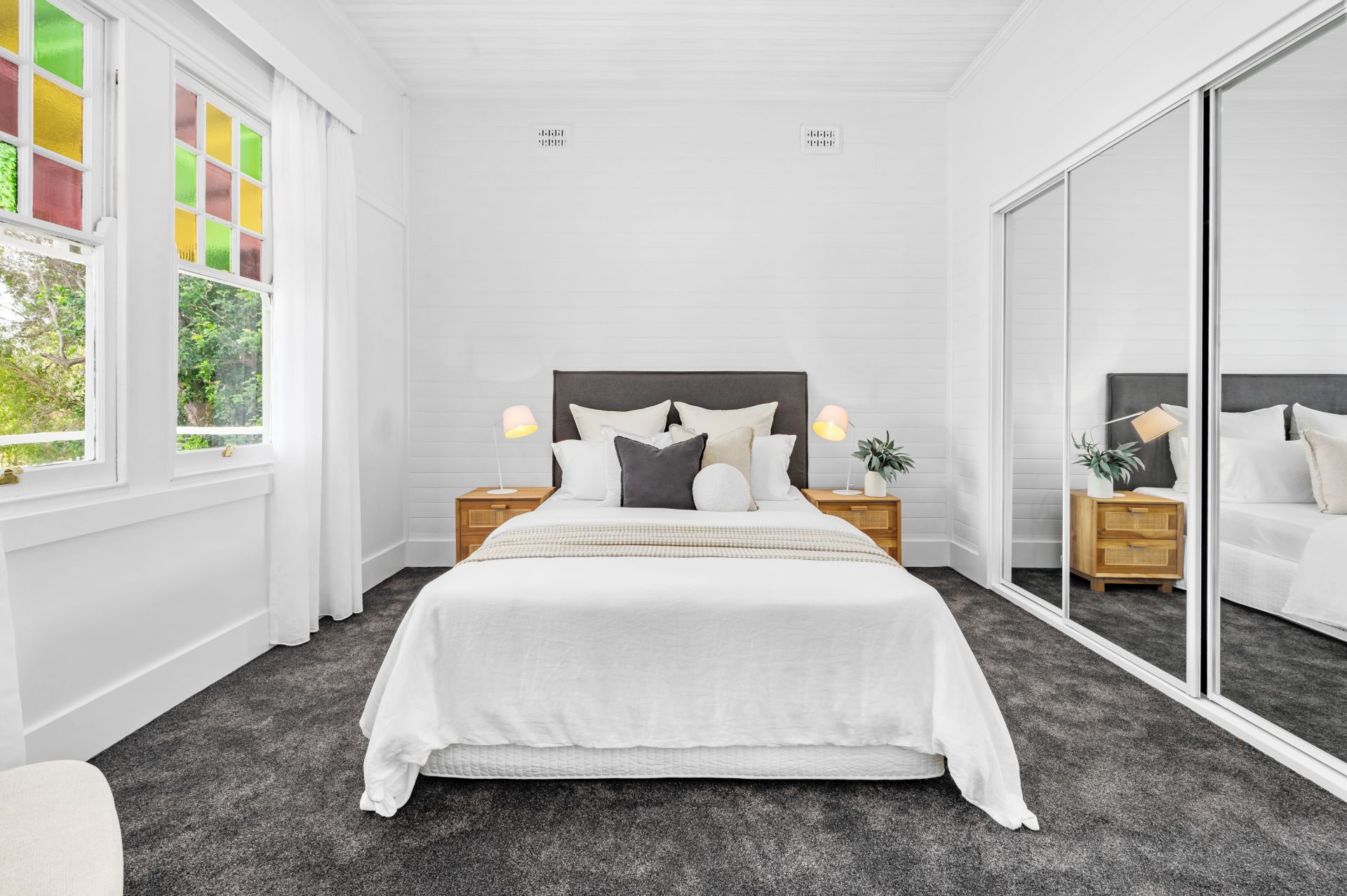 Welcome to this beautifully renovated double-fronted home that has undergone a stunning transformation from top to bottom, ensuring a modern living space that will capture your heart from the moment you step inside. Paying homage to its original c.1910 charm, this home maintains its character with timber lined ceilings and walls, picture rails, and colourful glass windows in the front bedrooms.