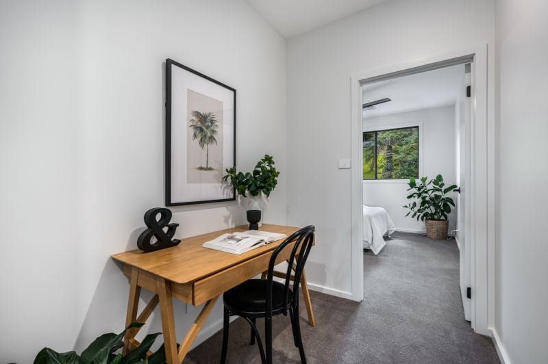 Set at the rear of the complex in an elevated position, this home sits above its double garage, delivering a sense of privacy and basking in northerly light. The soaring 5.8m light well in the main open-plan living area floods the space with sunshine, creating an inviting atmosphere you'll love coming home to. The master bedroom, thoughtfully positioned on the main living level, feels like your personal retreat. It features an ensuite and a private deck, the perfect spot for your morning coffee. Upstairs, three additional bedrooms provide plenty of space for the whole family. The fourth bedroom offers flexibility as a second living area, ensuring everyone has room to unwind.