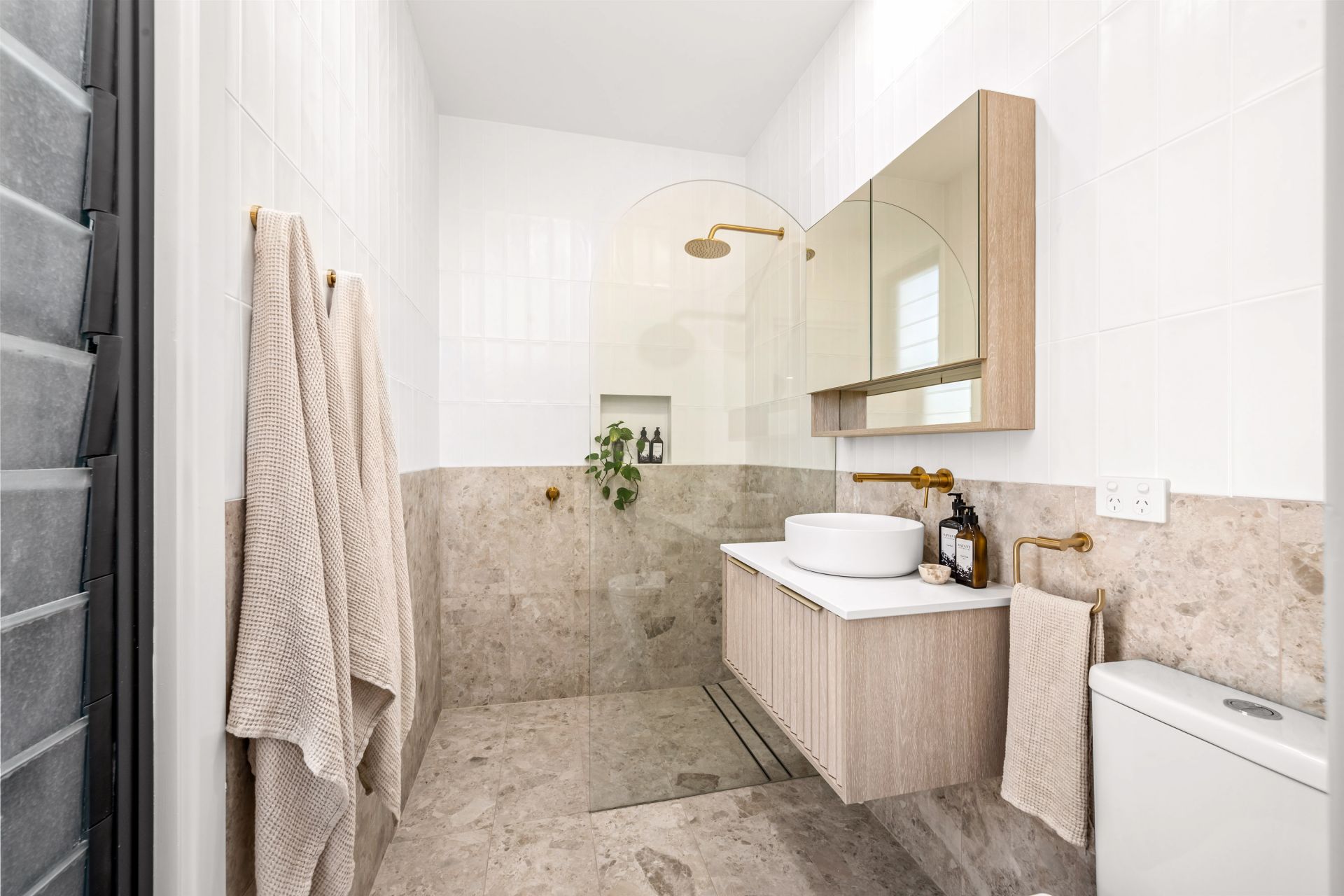 • Brushed gold and brass tapware throughout the kitchen and bathrooms
