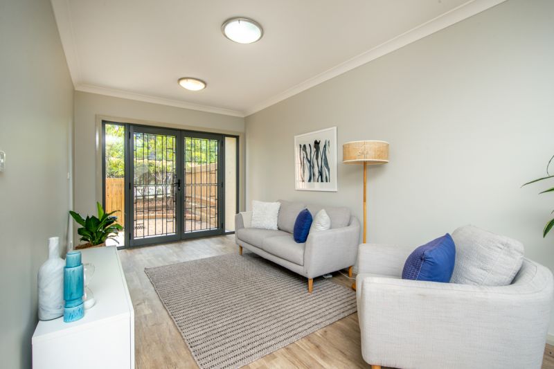 Open plan living with air-conditioning connects to spacious courtyard garden