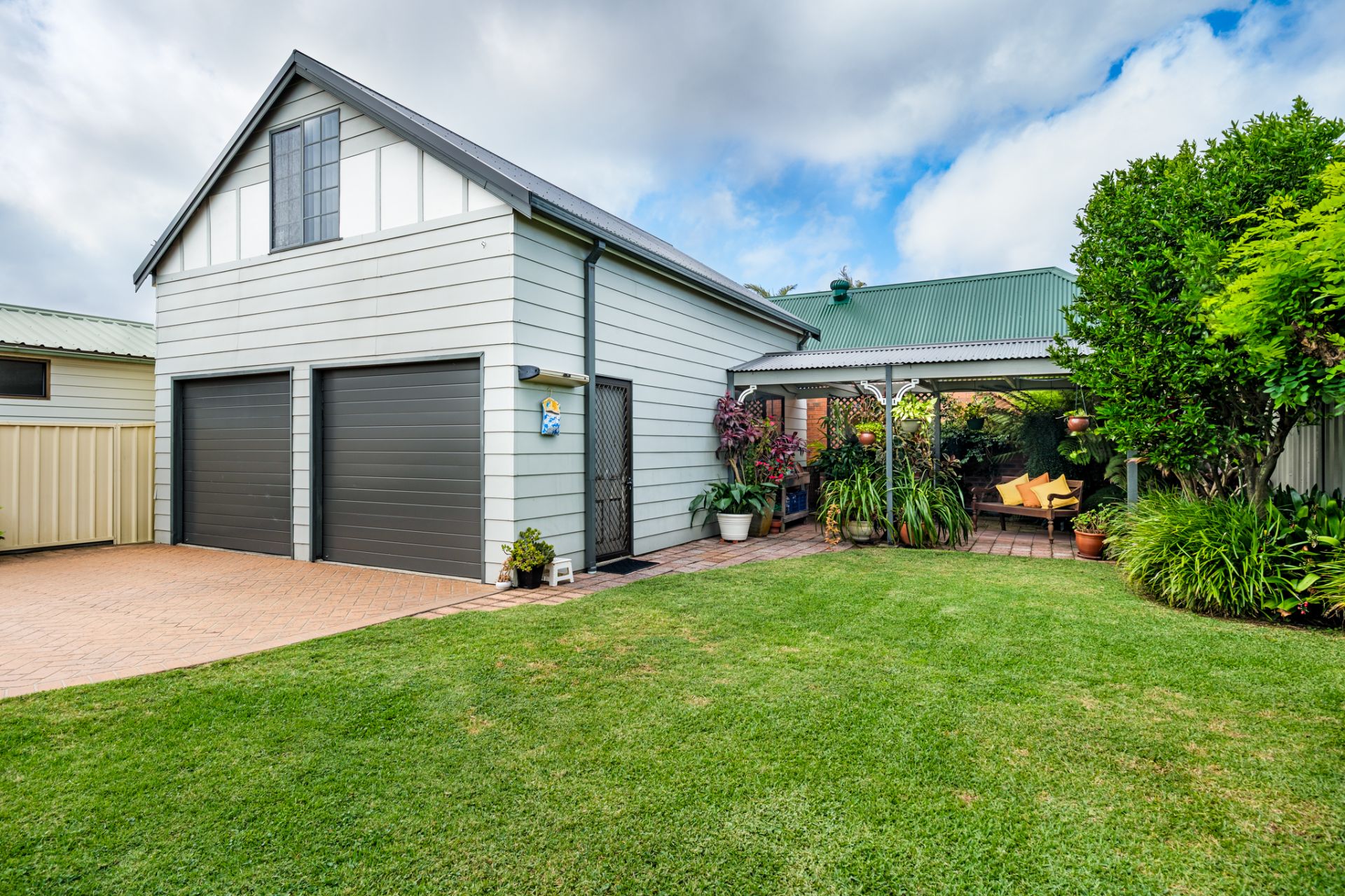 - Freestanding double garage with upper level retreat