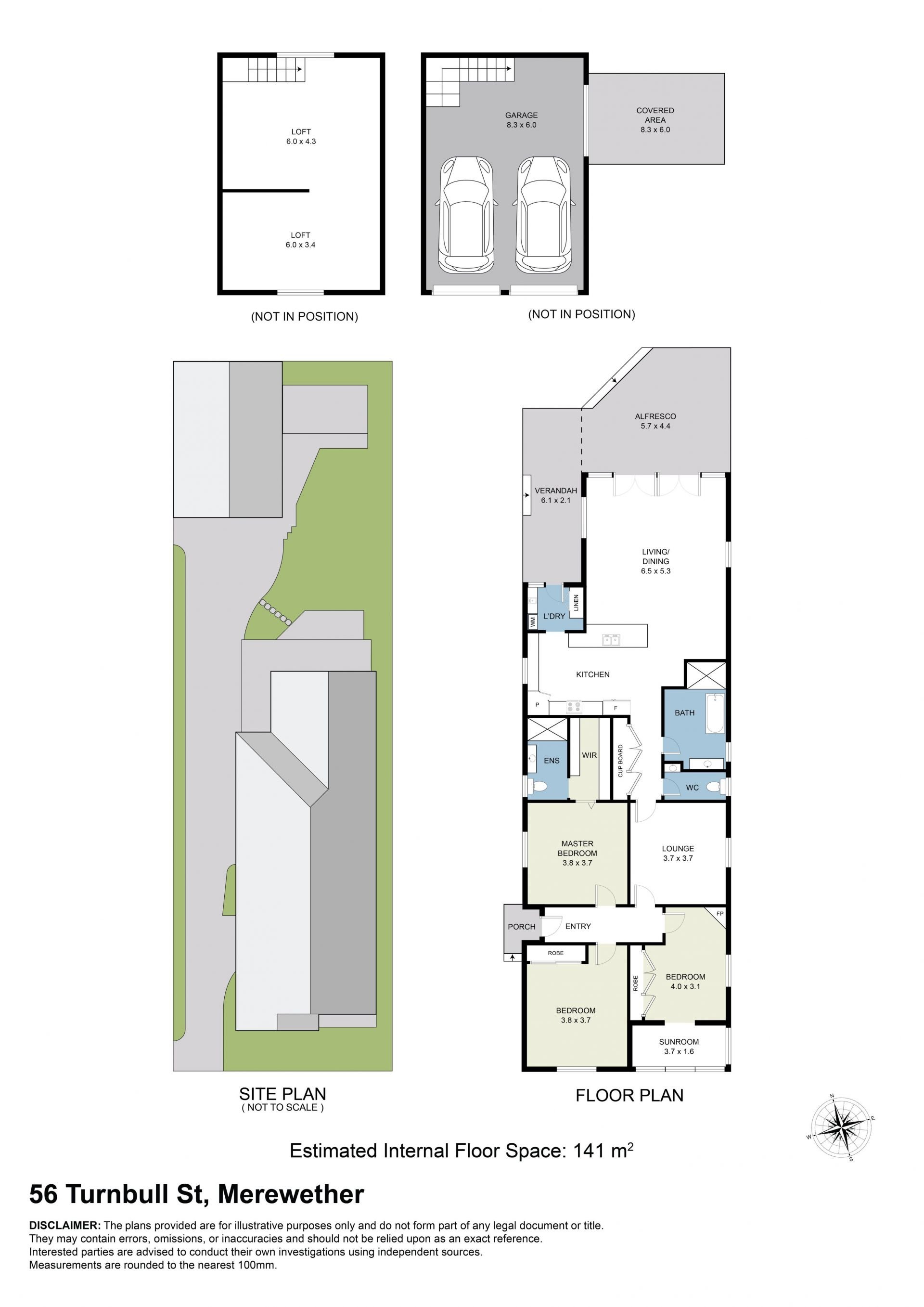 - Three robed bedrooms, main with ensuite, one with sunroom/study and gas fire