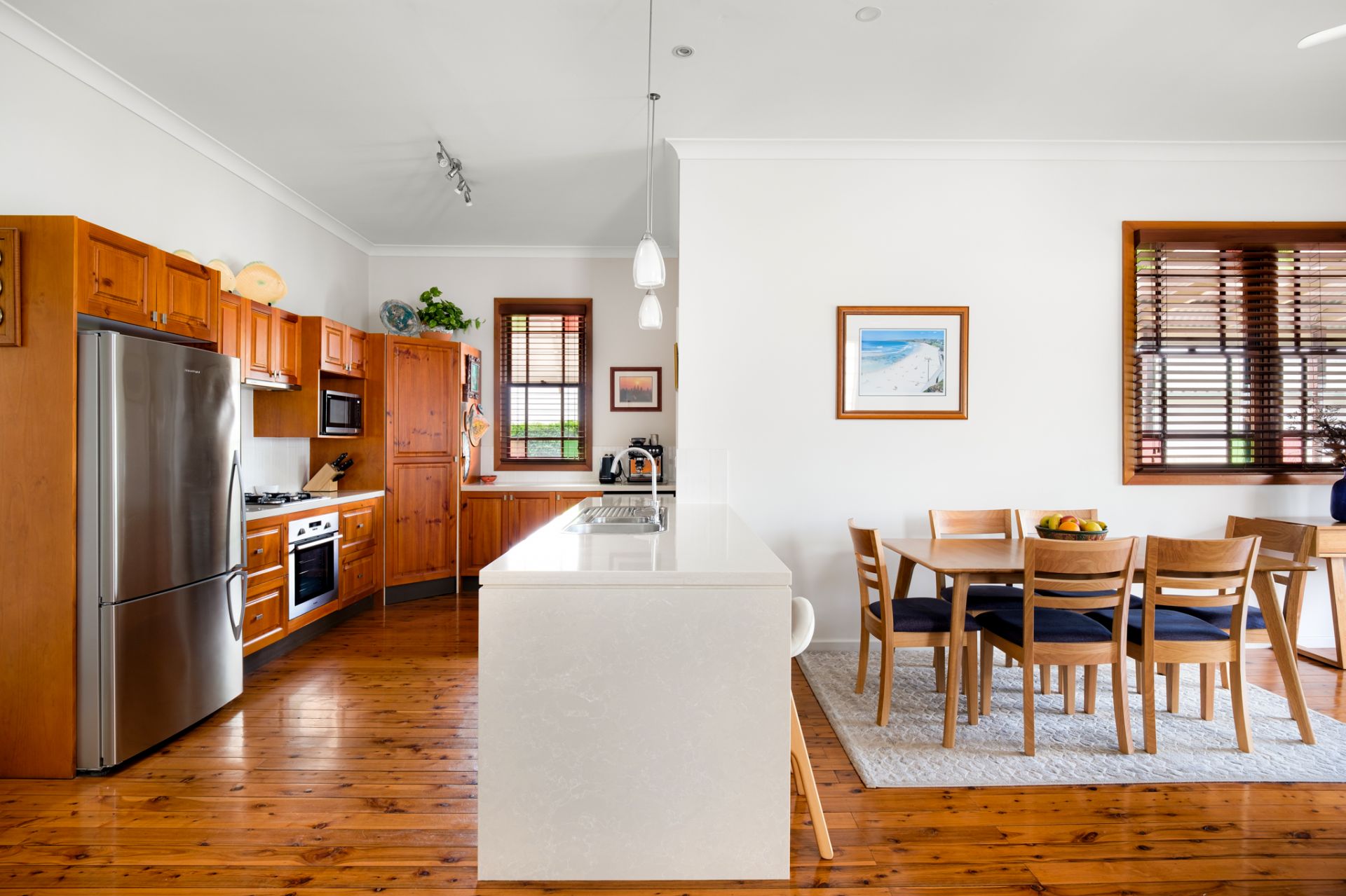 - Spacious timber kitchen, gas cooktop, under bench oven, dishwasher