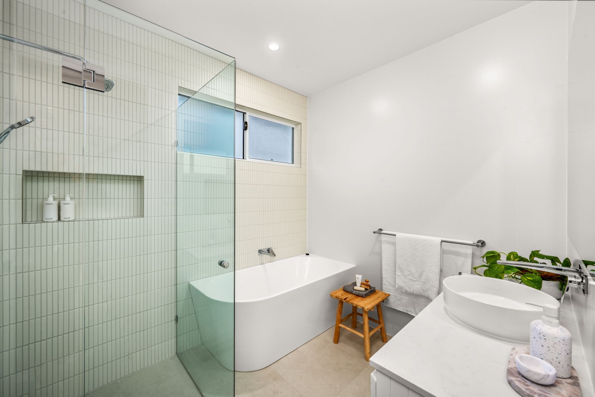 Inside the main home, standout features are everywhere. The master bedroom is positioned downstairs for privacy, with a walk-in robe and sleek ensuite, while upstairs you'll find a spacious second living zone, three more bedrooms, family bathroom and a front deck.