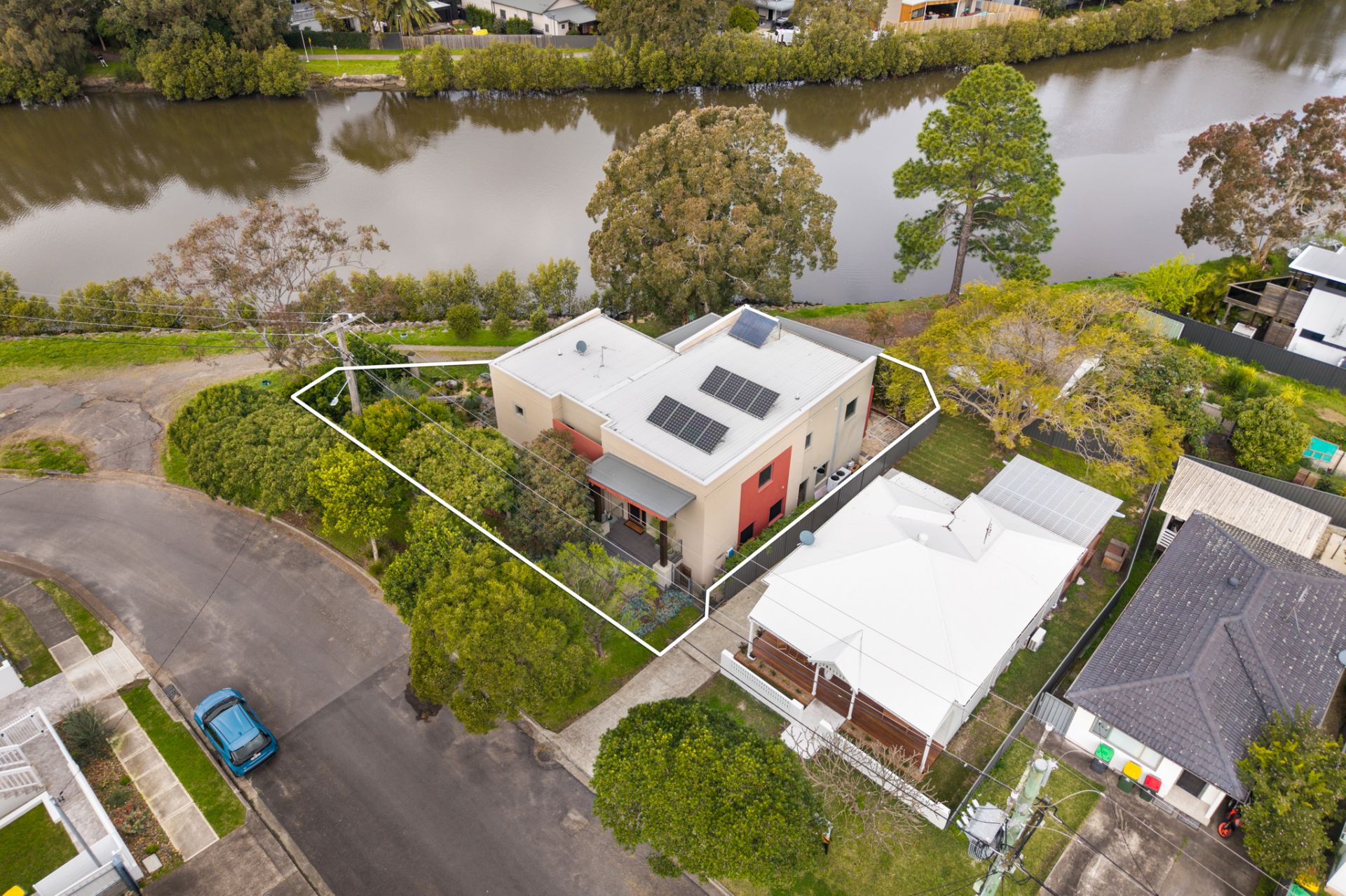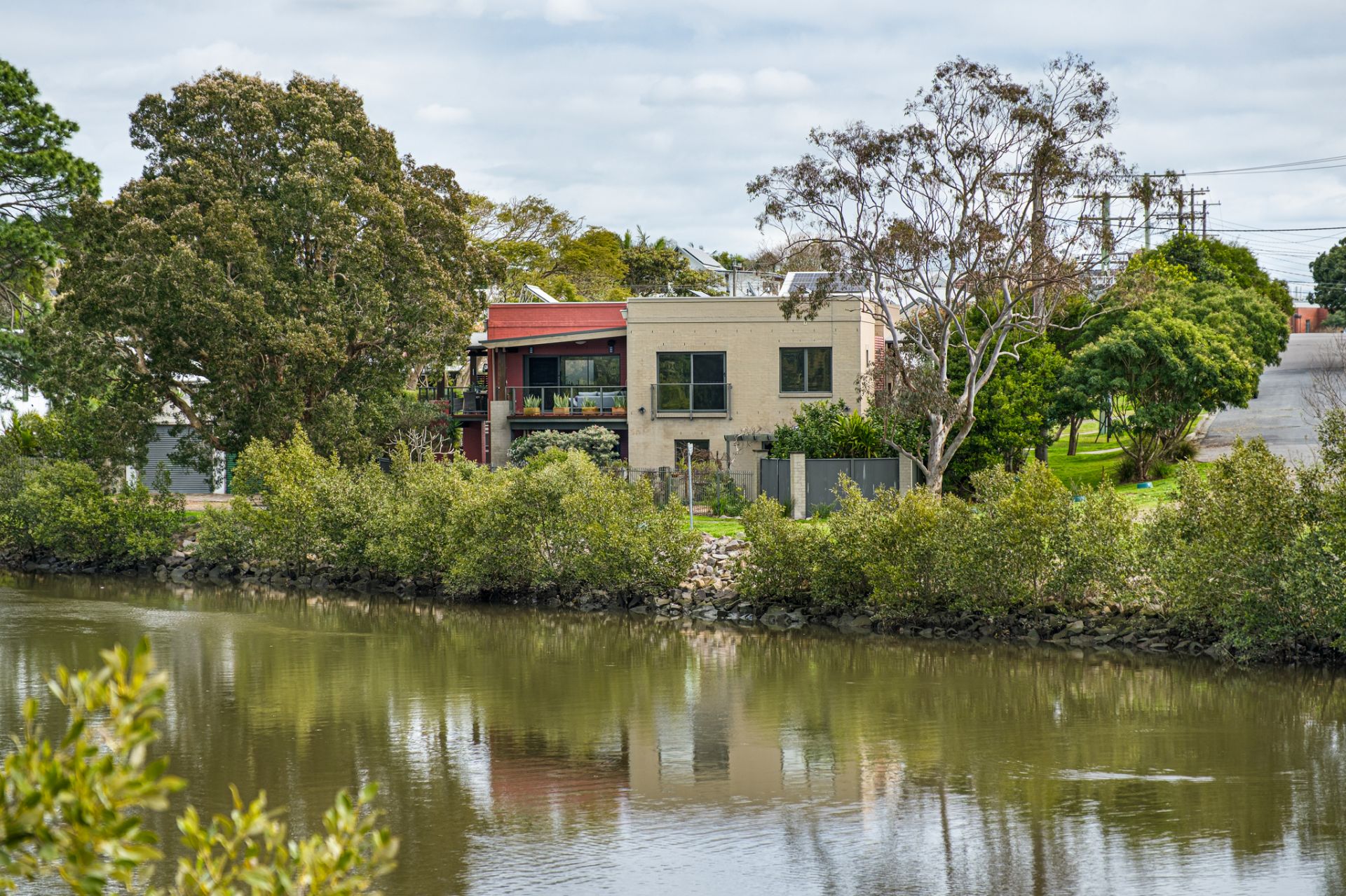 - Architectural split-level home, 478.4sqm waterfront block