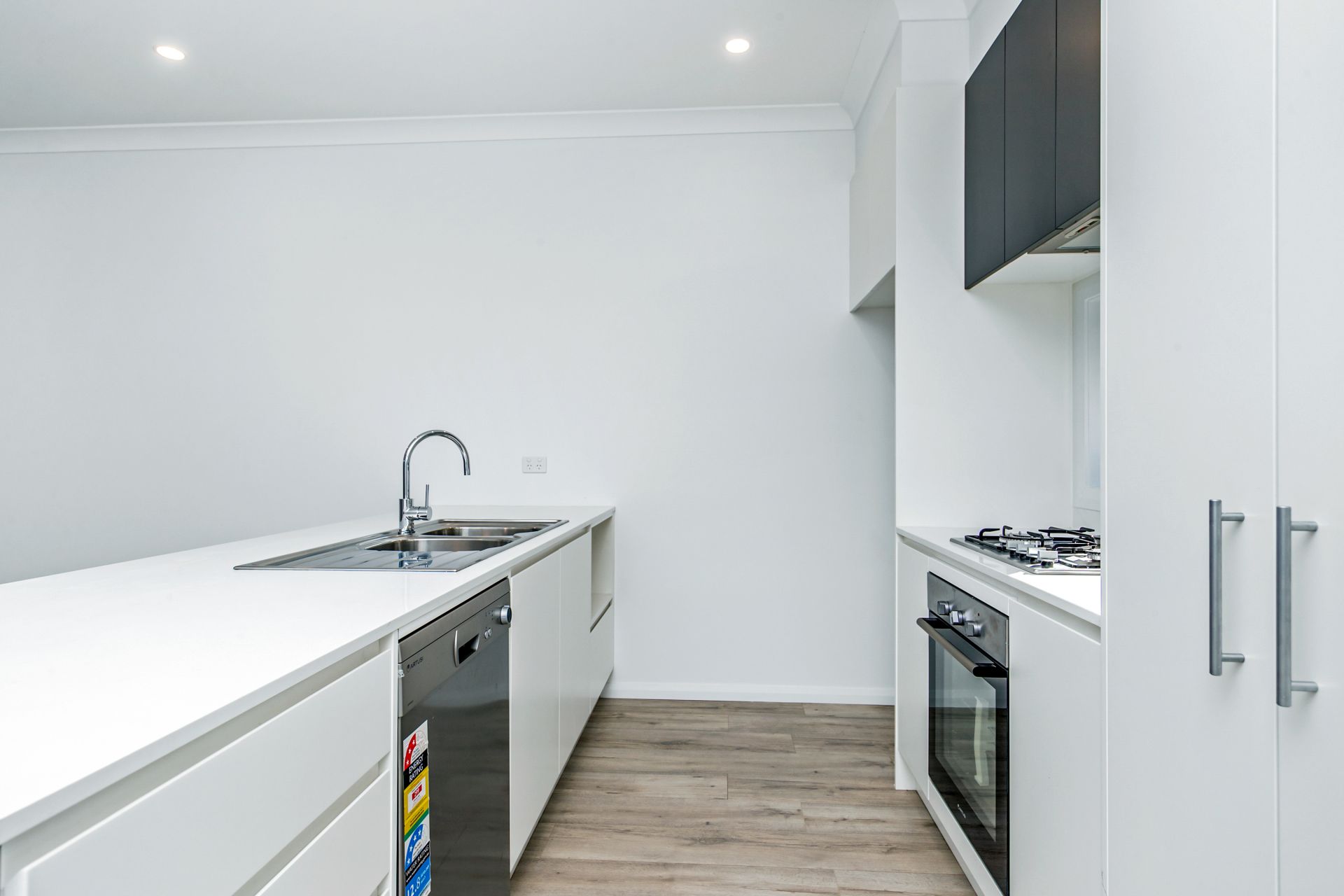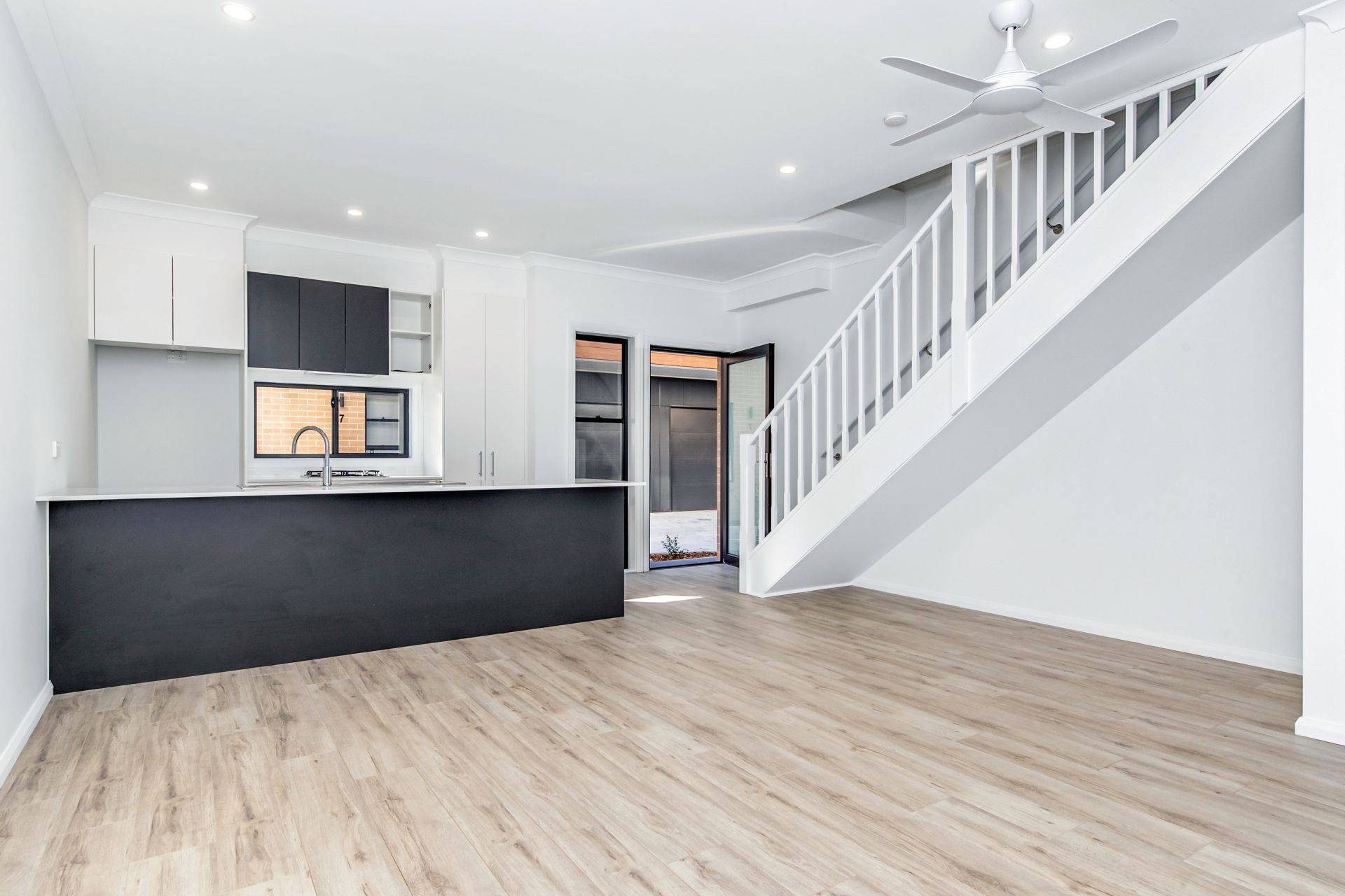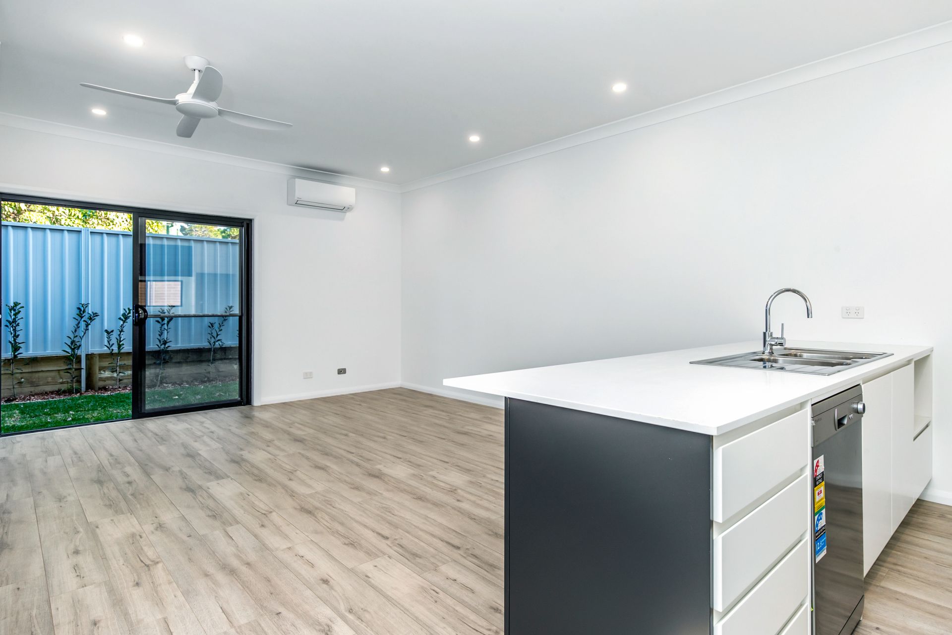 Set in small complex of eight only the modern open plan air conditioned living seamlessly flows to outdoor entertaining area and the kitchen, which is plumbed for water/ice dispensing fridge, with a smart stone island bench and pantry is the heart of the home.